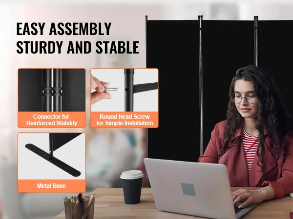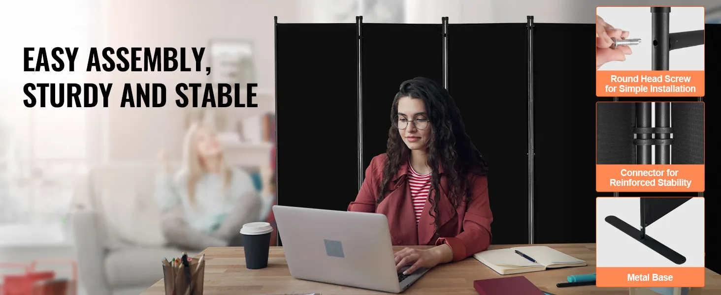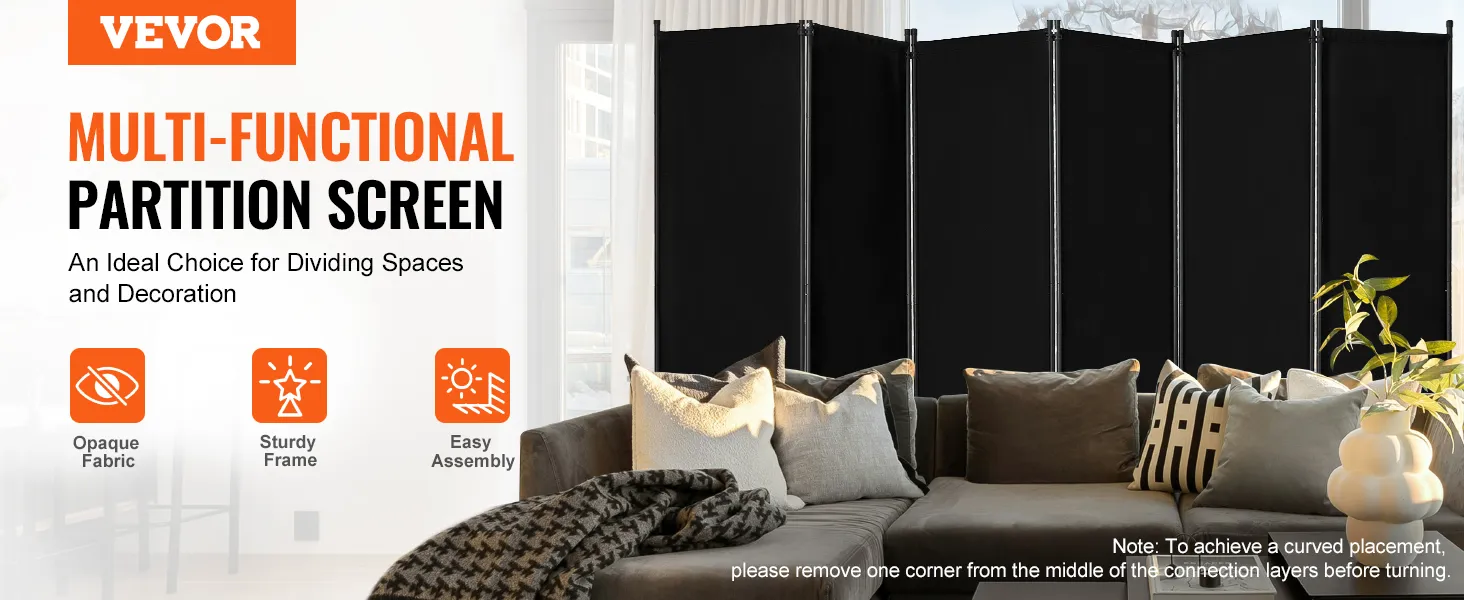 Easy Assembly & Storage: With all necessary accessories and clear assembly instructions, the room screen is easy to set up in about 15 minutes—two people are recommended for the process. For stability during use, we suggest slightly folding the W-shaped sections. When not in use, simply fold it and store it in a corner, saving space.