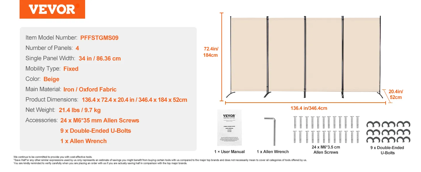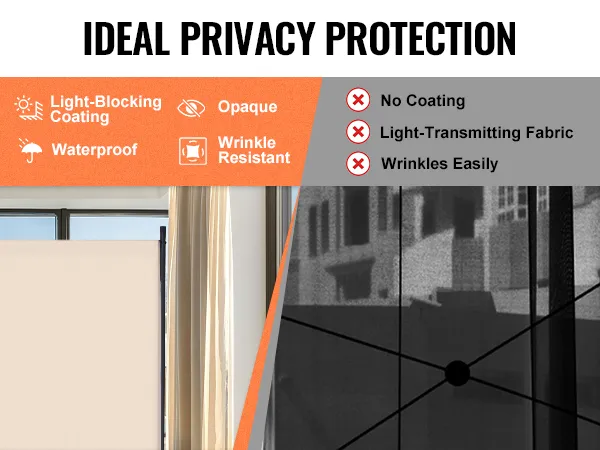 Easy to Store: The privacy screen measures (136.4 x 72.4 x 20.4 in / 3464 x 1840 x 520 mm), each panel measures 34 W x 72.4 H inch. It's foldable, you can easily move to anywhere you want.
