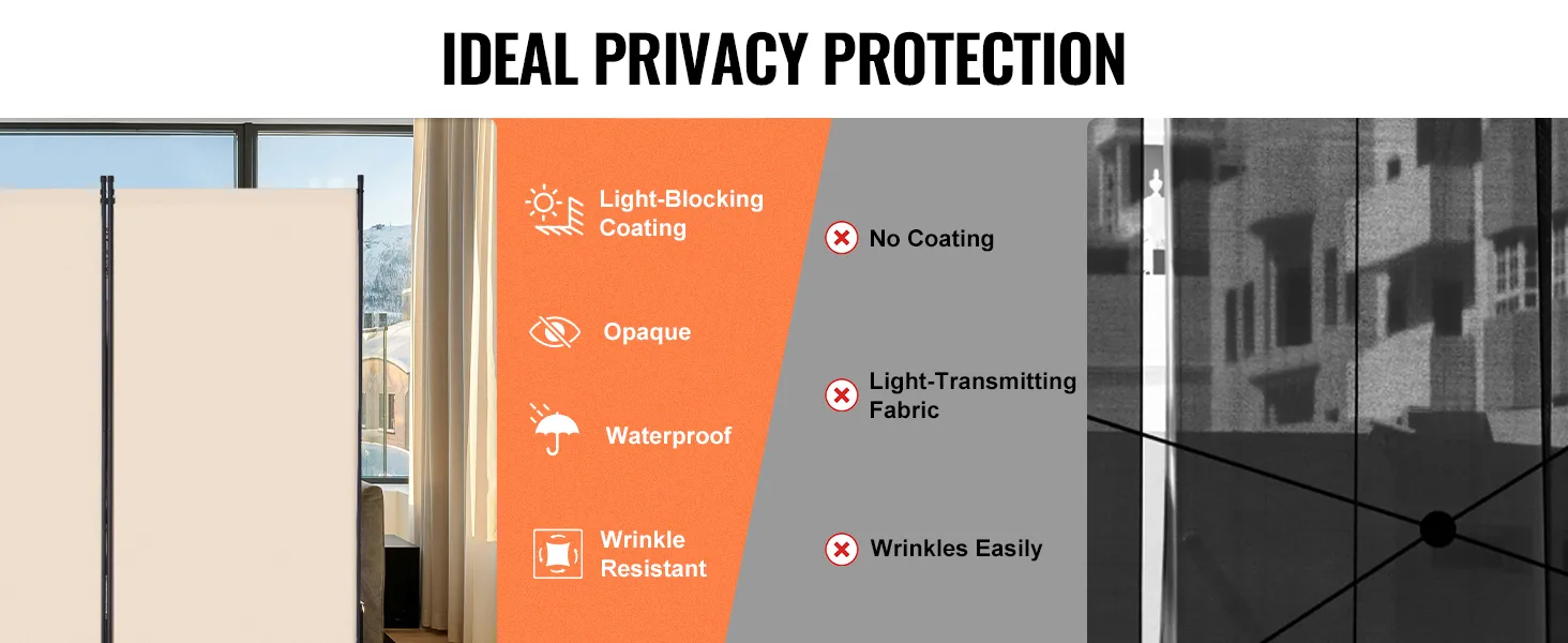 High-Quality Materials: This 4 panel room divider is designed with upgraded to Oxford fabric, which is sturdy , waterproof and can give you more privacy. The frame is made of iron material, which is reliable and can make sure that the room divider won't fall. And there are 3 color options to match your home decor and create the ideal arrangement to meet your privacy needs.