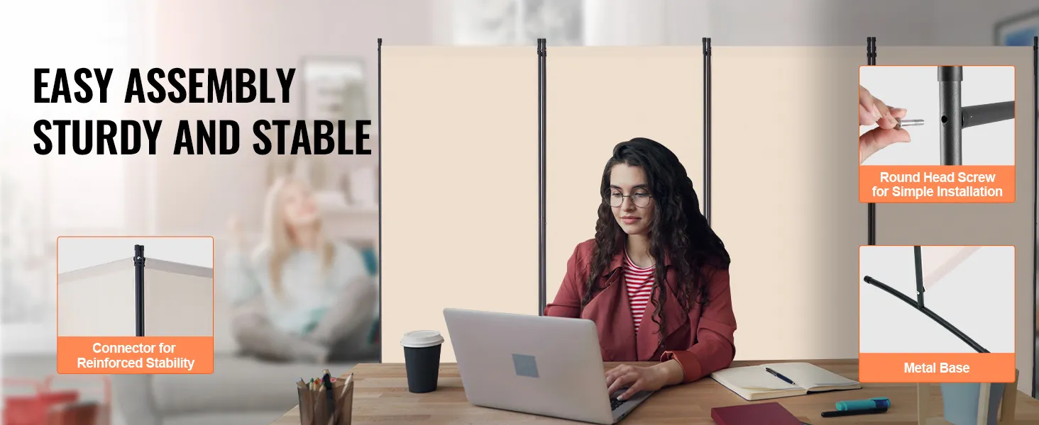 Easy Assembly & Storage: With all necessary accessories and clear assembly instructions, the room screen is easy to set up in about 15 minutes—two people are recommended for the process. For stability during use, we suggest slightly folding the W-shaped sections. When not in use, simply fold it and store it in a corner, saving space.