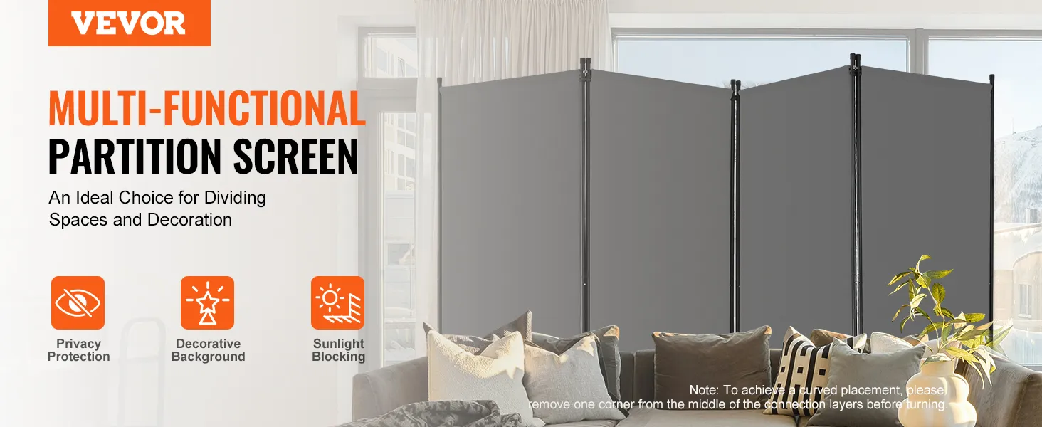 • Easy Assembly & Storage: With all necessary accessories and clear assembly instructions, the room screen is easy to set up in about 15 minutes—two people are recommended for the process. For stability during use, we suggest slightly folding the W-shaped sections. When not in use, simply fold it and store it in a corner, saving space.