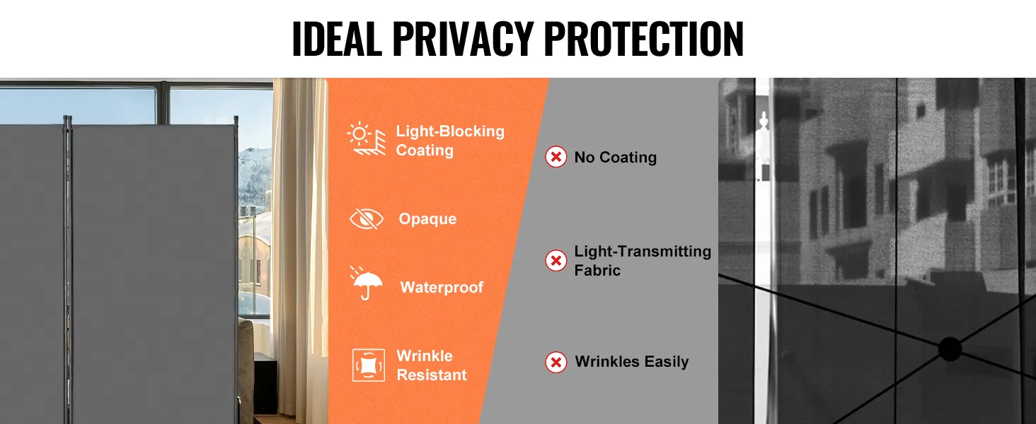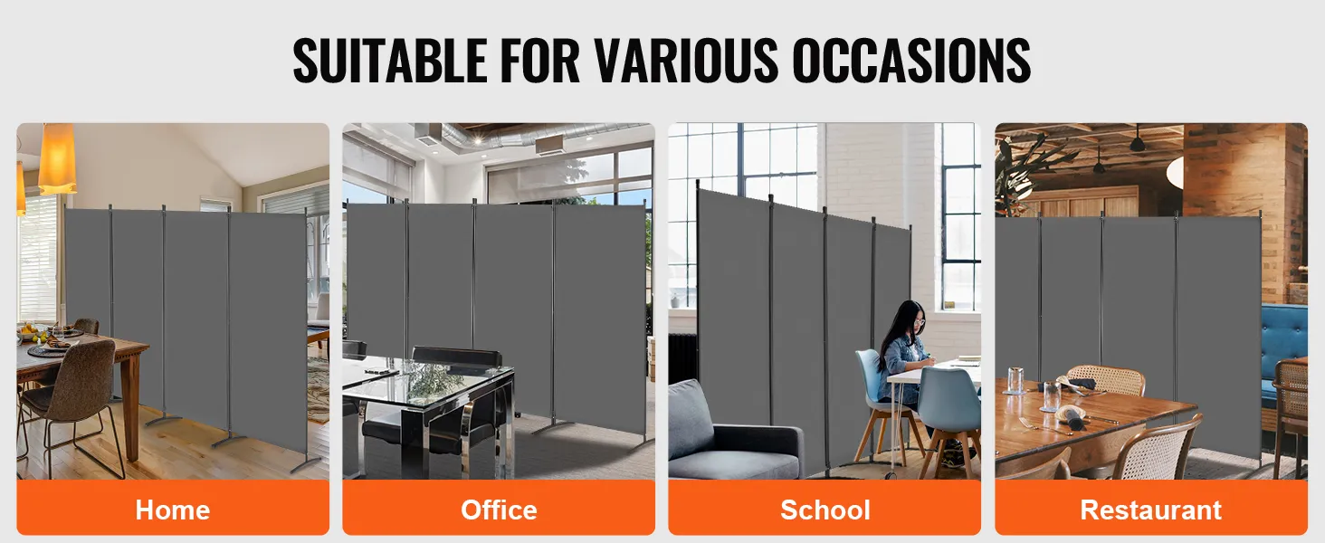• High-Quality Materials: This 4 panel room divider is designed with upgraded to Oxford fabric, which is sturdy , waterproof and can give you more privacy. The frame is made of iron material, which is reliable and can make sure that the room divider won't fall. And there are 3 color options to match your home decor and create the ideal arrangement to meet your privacy needs.