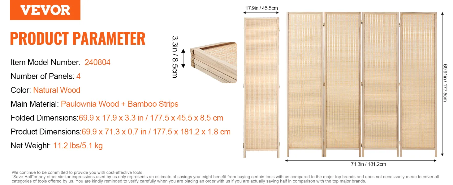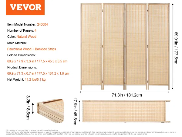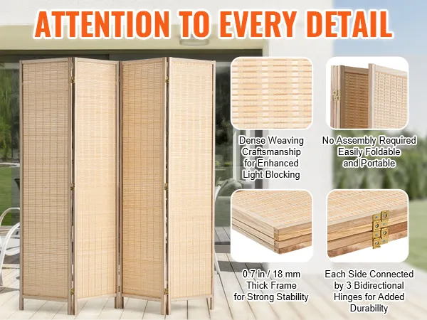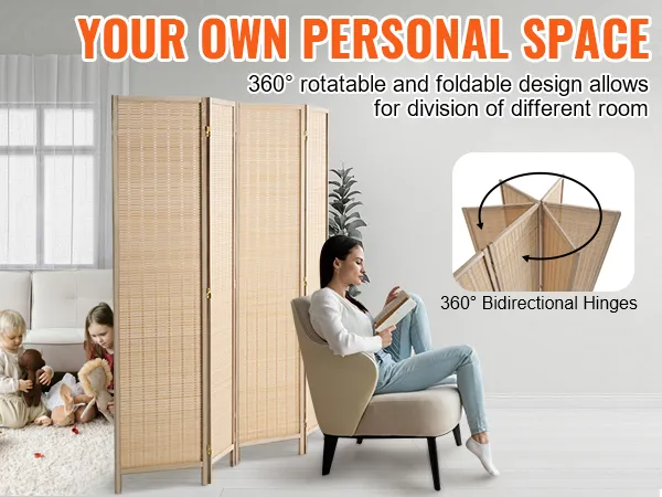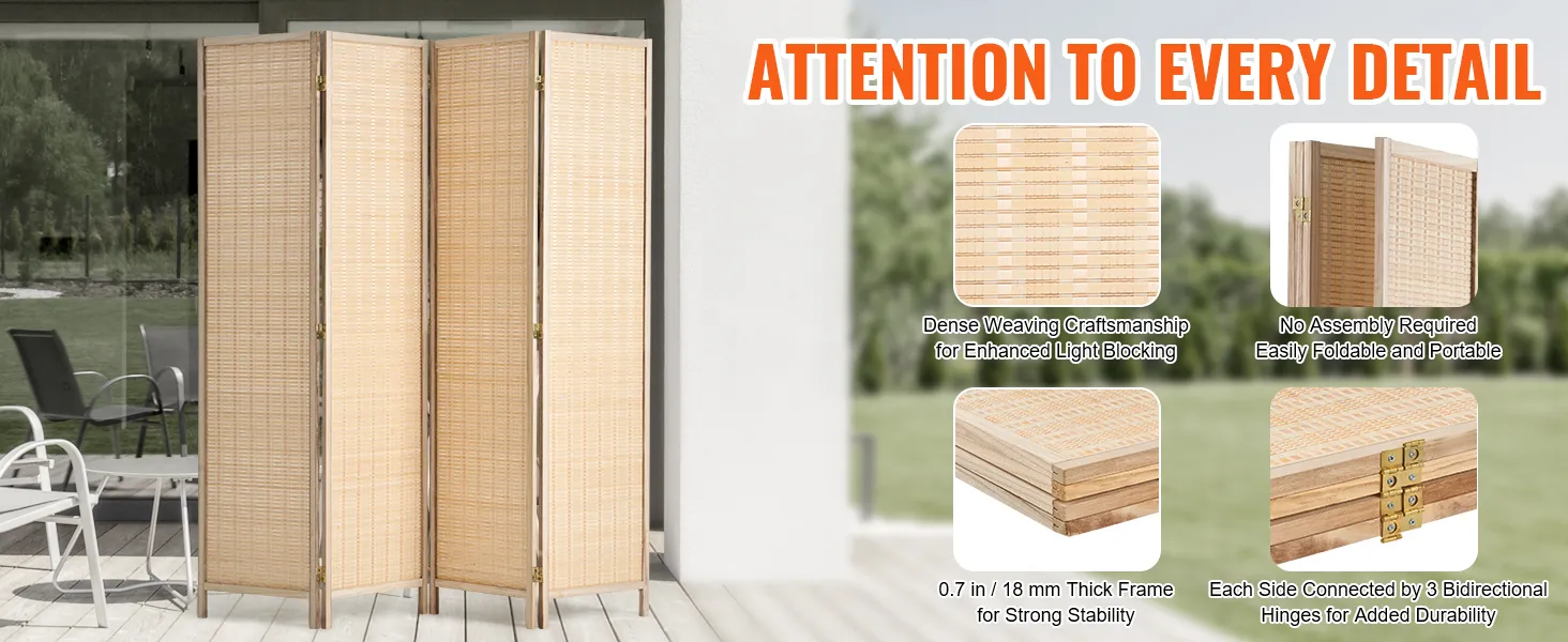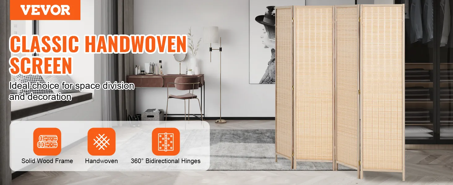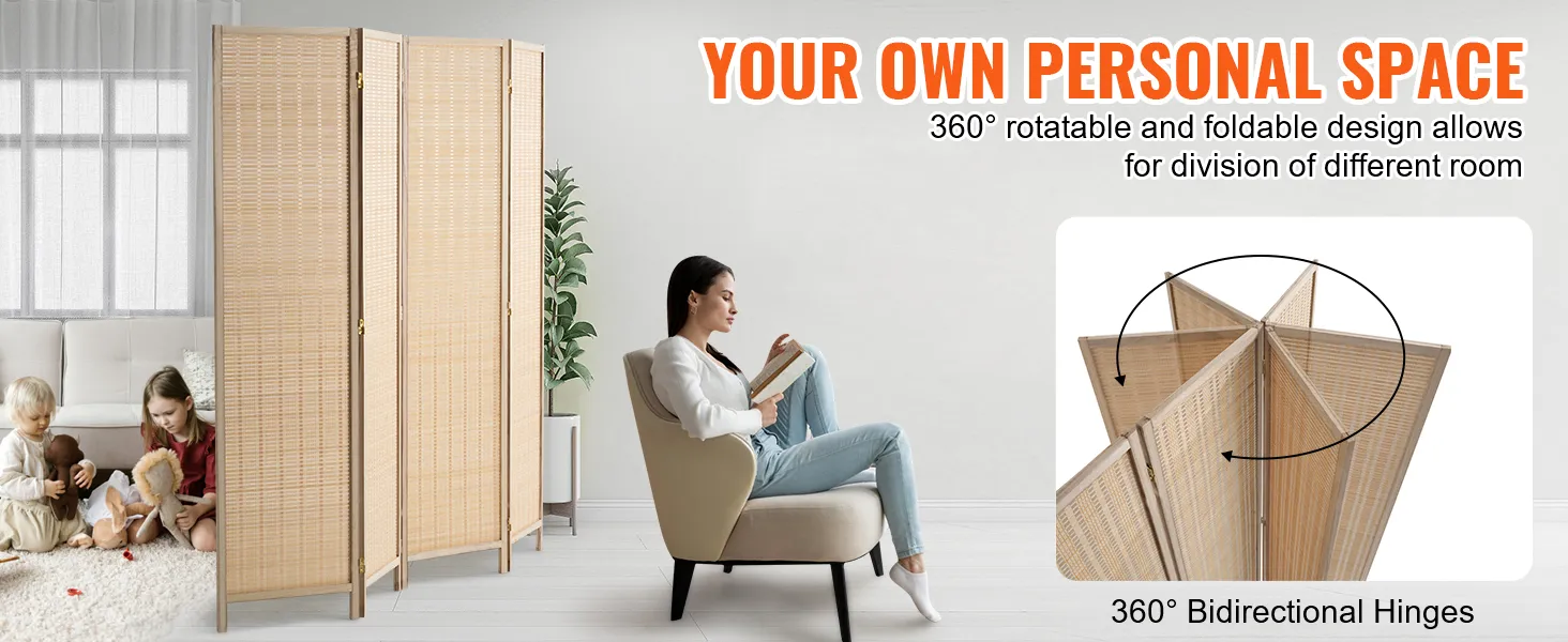 4 Panels Woven Room Divider-Privacy and Style in Every Fold!