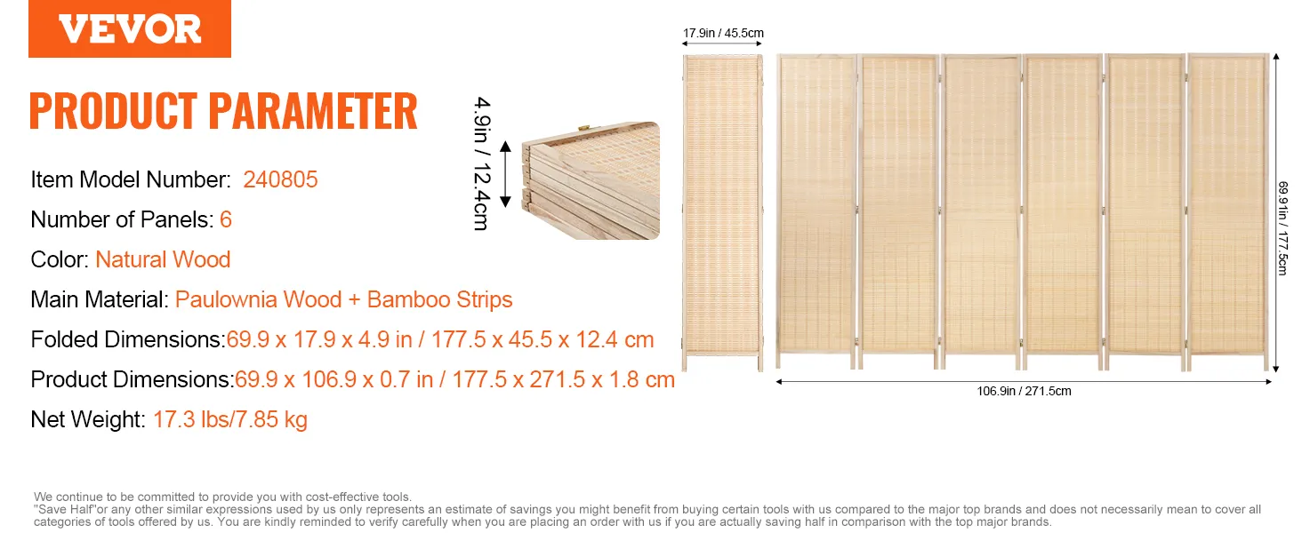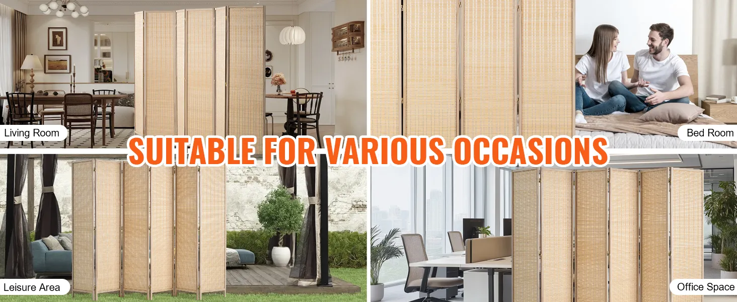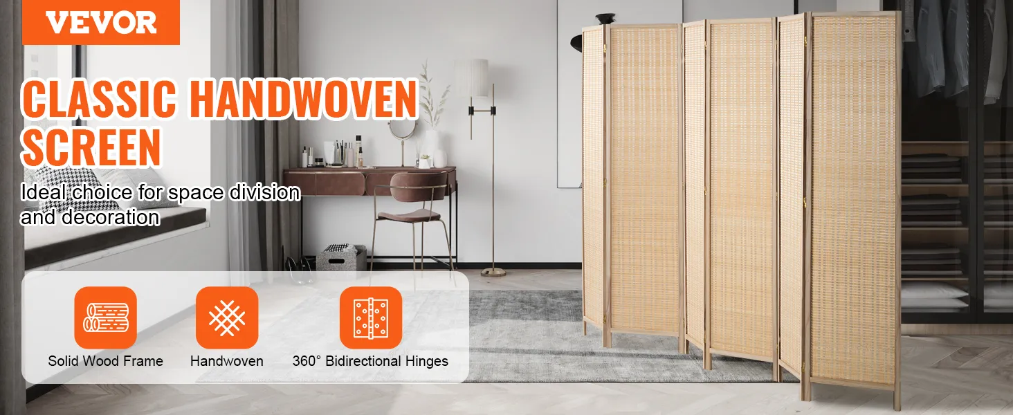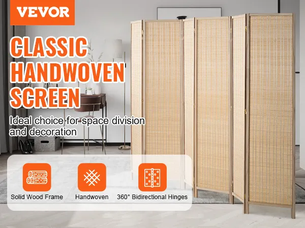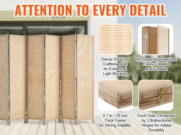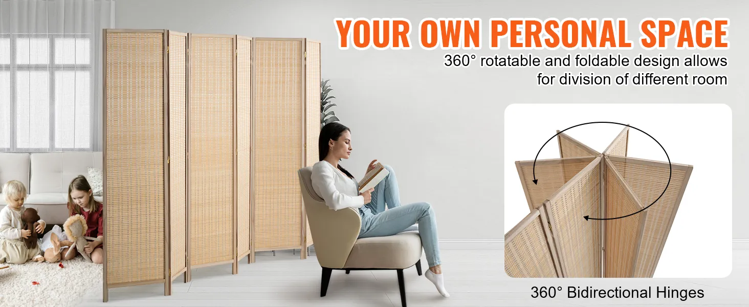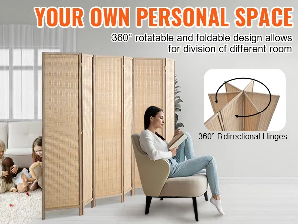 6 Panels Woven Room Divider-Privacy and Style in Every Fold!