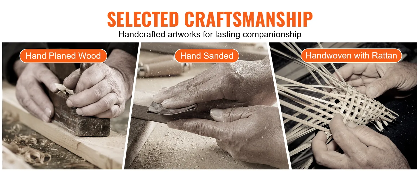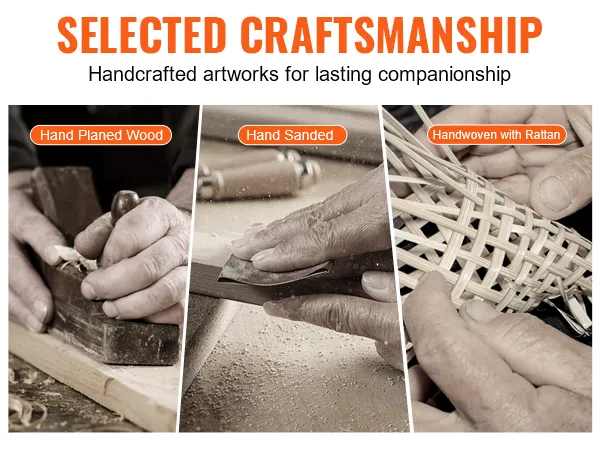Hoogwaardige en duurzame materialen: we gebruiken hoogwaardig paulowniahout voor het frame met een fijne textuur en een opvallende houtnerf, die bestand is tegen vervorming en scheuren bij langdurig gebruik. Handgeweven met rotanstrips voor een prachtige, niet-stijve vorm die sterk en glad blijft zonder scherpe randen of splinters, waardoor je handen veilig blijven.