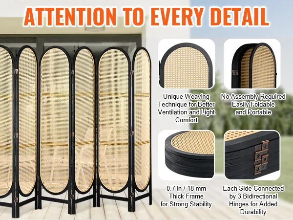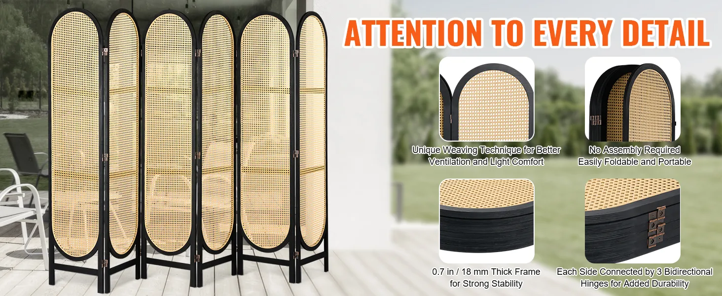 Geweven kamerverdeler met 6 panelen - Privacy en stijl in elke vouw!