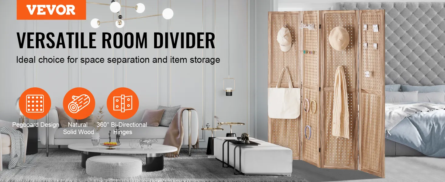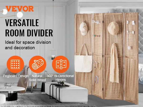 Modern Minimalism: This 64-inch room divider features four sleek panels, providing ample privacy to make your life more relaxed and free. The pegboard design allows you to hang your favorite items, keeping your space tidy and inviting.