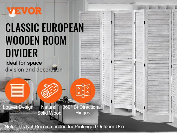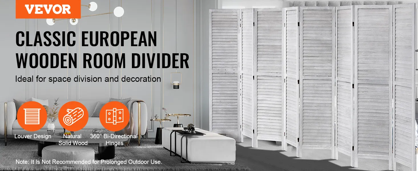 Klassiek Europees ontwerp: deze rustieke scheidingswand van 325 cm bestaat uit acht elegante panelen in Europese stijl, die voldoende privacy bieden voor elke kamer. Het strakke lamellenontwerp dient zowel als stijlvol privacyscherm als als decoratief element, waardoor de esthetiek van uw huis moeiteloos wordt verbeterd.