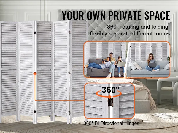Flexibele beweging van 360°: elk scheidingspaneel is verbonden met drie stevige, bidirectionele scharnieren, zodat u het onder elke hoek kunt draaien en vouwen. Wanneer u hem niet gebruikt, vouwt u hem op en bergt u hem op in een hoek. Voor extra stabiliteit kunt u het in een zigzagpatroon plaatsen, zodat het niet omvalt als het volledig is uitgeschoven.