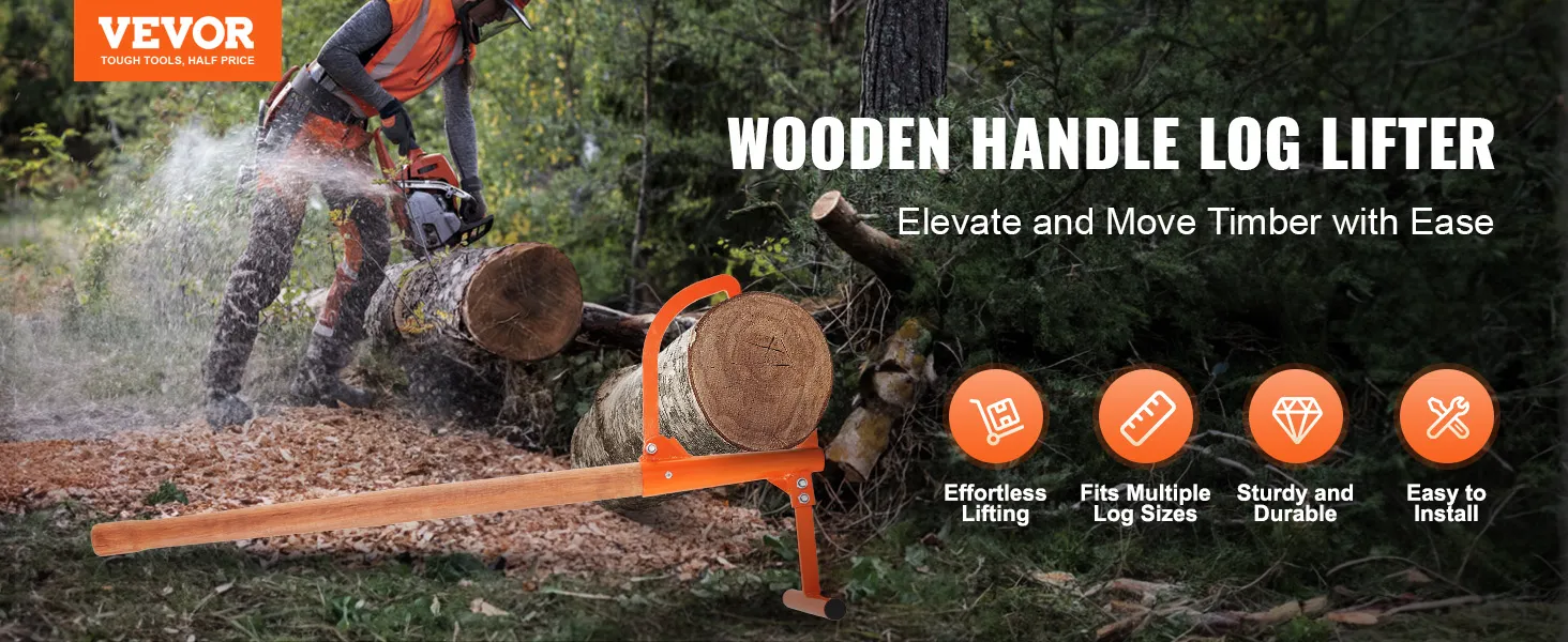 Houtlifter voor eenvoudig zagen: Onze houtlifter gebruikt een hefboomwerking om boomstammen moeiteloos van de grond te tillen, waardoor veilig en gemakkelijk kan worden gezaagd. Het is een onmisbaar hulpmiddel bij het werken in bossen, op boerderijen en in houtzagerijen.