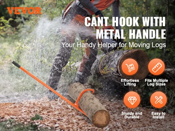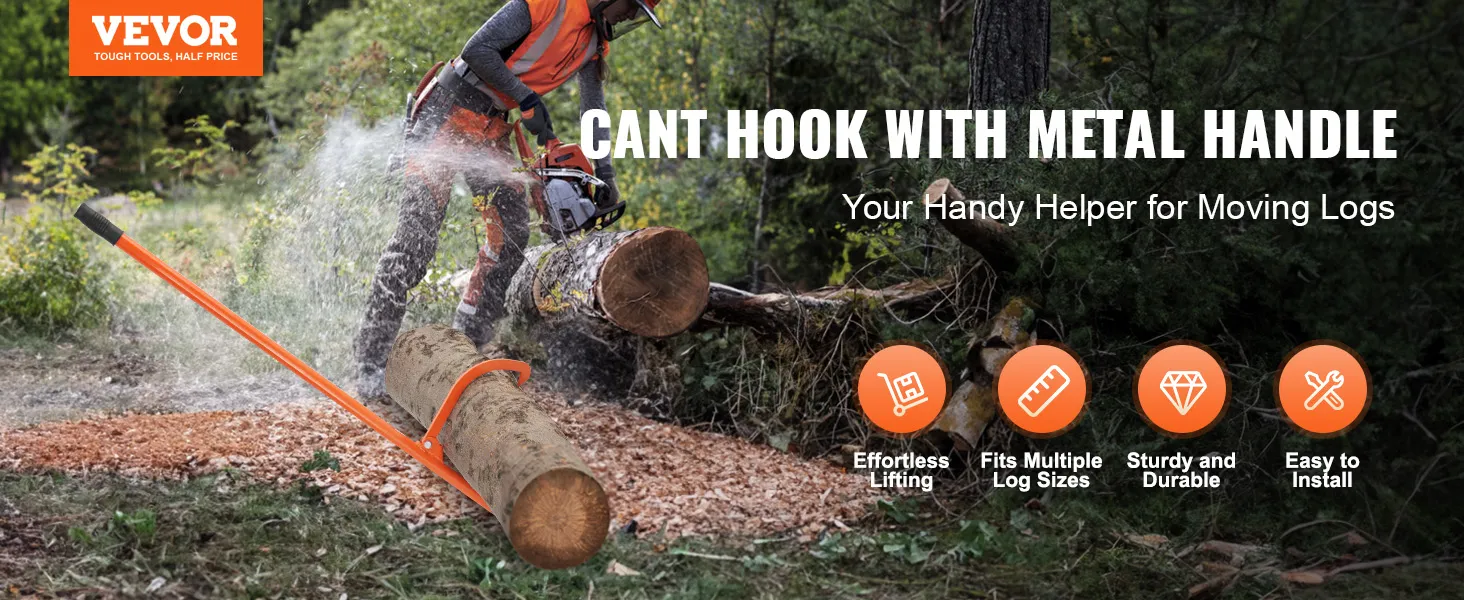 VEVOR velkrik, 1180 mm, robuuste stalen houtkrik, bosbouwhaak, houtkrik voor boomstammen met een diameter van 81 cm, bosbouwgereedschap, velhulp met dubbele functie voor het rollen en klemmen van boomstammen