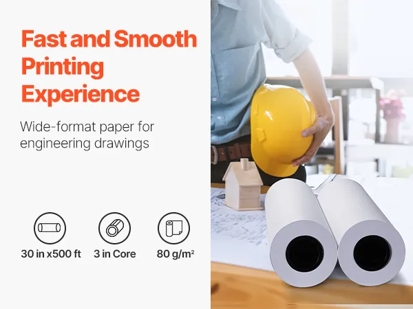 Hoge printsnelheid: Deze plotterpapierrol is verticaal verpakt om installatieproblemen te verminderen en kernvervorming te voorkomen, waardoor papierstoringen tot een minimum worden beperkt. De rol is gemaakt van nieuwe materialen en biedt tot 94% dekking, waardoor dubbelzijdig printen in kleur en doorschijnend tekenen mogelijk zijn voor efficiënt werken.