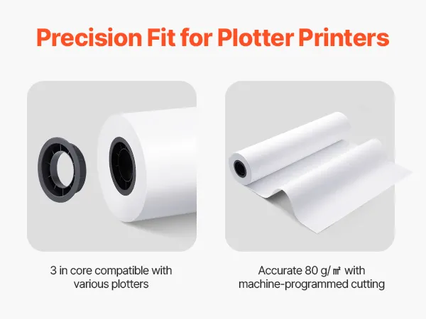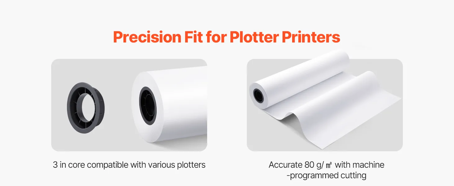 Nauwkeurige gewichtscontrole: Ons plotterpapier maakt gebruik van nieuwe, machinaal geprogrammeerde lengteberekeningen, wat zorgt voor een hogere precisie dan oudere snijmethoden. Een gewicht van 80 g/m² en een nauwkeurige lengte garanderen compatibiliteit met de specificaties van de printer, voor soepele papierinvoer en minder papierstoringen.