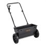 Robuuste constructie: Dankzij het gepoedercoate stalen frame en de explosiebestendige kunststof wielen is de kunstmeststrooier UV-bestendig en stootvast. Uitgerust met banden van 25,4 cm (10 inch) is hij geschikt voor gazons, grind en besneeuwde oppervlakken.