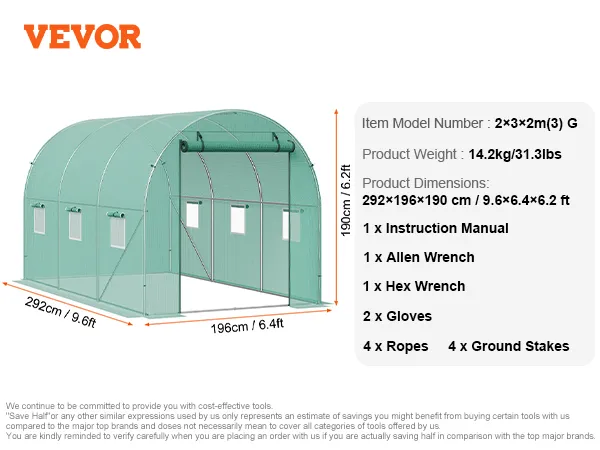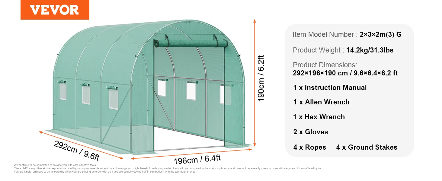 Ruim inloopontwerp: met een ruim oppervlak van 292 x 196 x 190 cm / 9,58 x 6,43 x 6,23 voet is deze inloopkastunnel geschikt voor een verscheidenheid aan planten. Gemakkelijk toegang tot en verzorging van uw planten, of stel meerdere plantenplanken in om te voldoen aan de behoeften van zowel de tuinier als de commerciële plantenkweek.