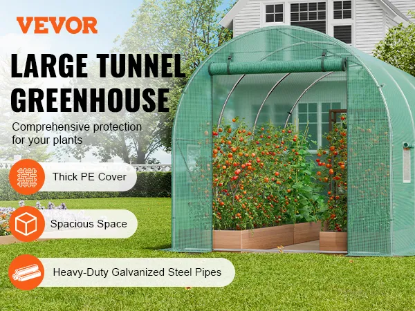 Deze tunnelkas is gemaakt van verdikte gegalvaniseerde stalen buizen en een stevige PE-afdekking. Het ruime interieur voldoet aan verschillende plantbehoeften en zorgt ervoor dat uw planten kunnen gedijen in een comfortabele omgeving.