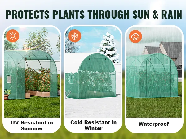 Door het royale formaat van deze foliekas kunt u vrij verschillende planten planten en eenvoudig meerdere planken plaatsen. Of het nu voor de moestuin of een kleine boerderij is, hij voldoet aan al uw beplantingsbehoeften.