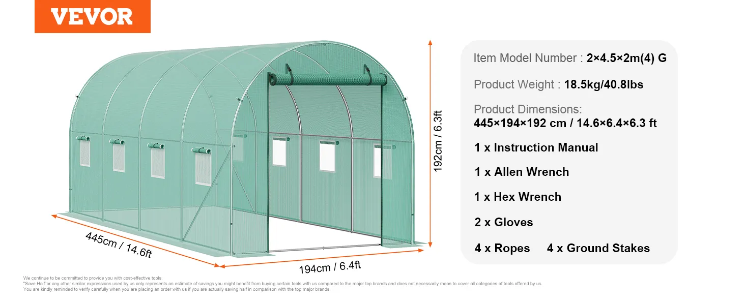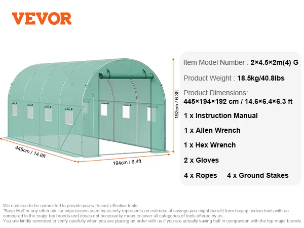 Spacious Walk-In Design: With a spacious 14.60x6.36x6.30 ft area, this walk-in greenhouse tunnel is ideal for growing a variety of plants. You can easily access and maintain your plants, or set up multiple plant shelves to meet both home gardening and commercial planting needs.