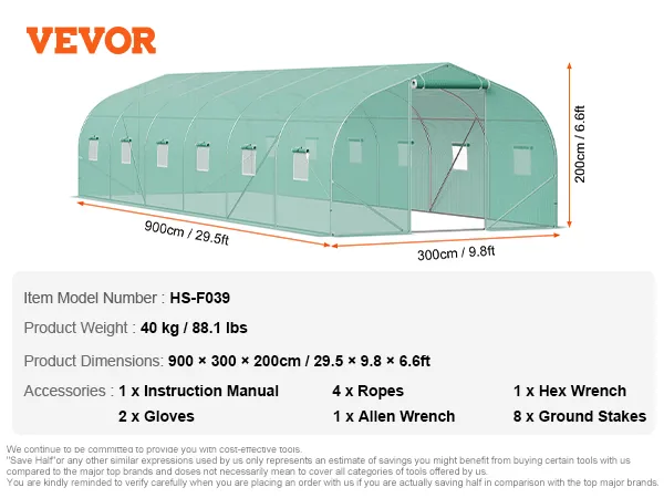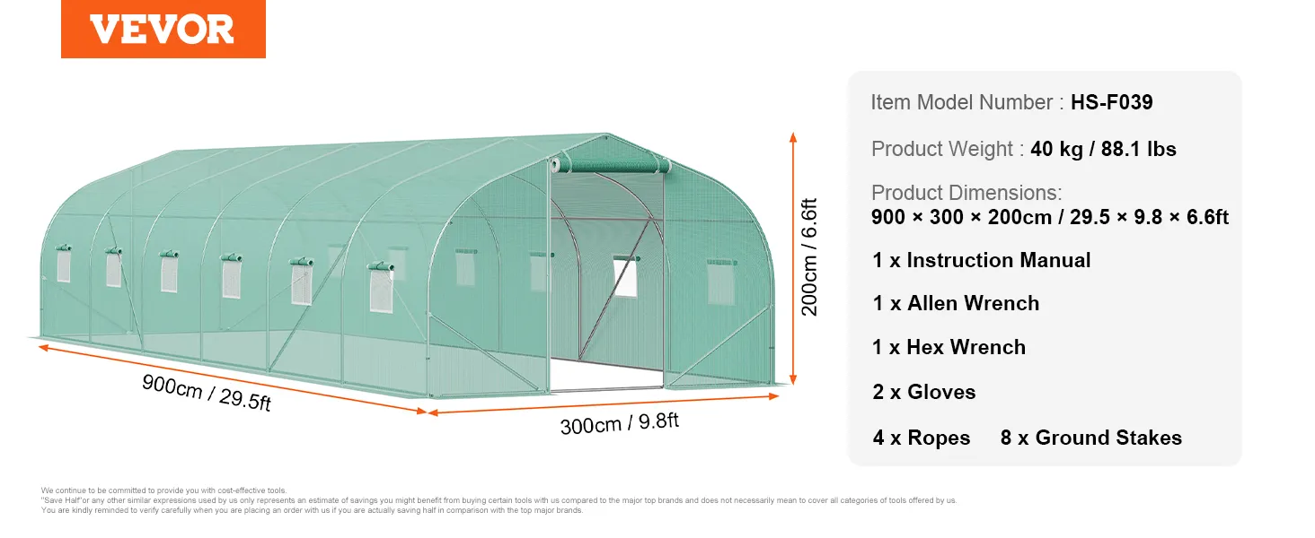 Ruim inloopontwerp: met een royale oppervlakte van 900 x 300 x 200 cm is deze inloopkastunnel perfect voor het kweken van een verscheidenheid aan planten. Het biedt gemakkelijke toegang voor beheer en onderhoud en biedt plaats aan meerdere plantenplanken, waardoor het geschikt is voor zowel tuinieren als commerciële beplantingsdoeleinden.