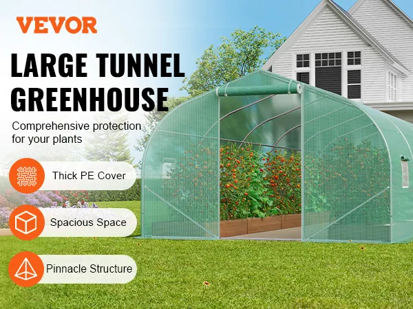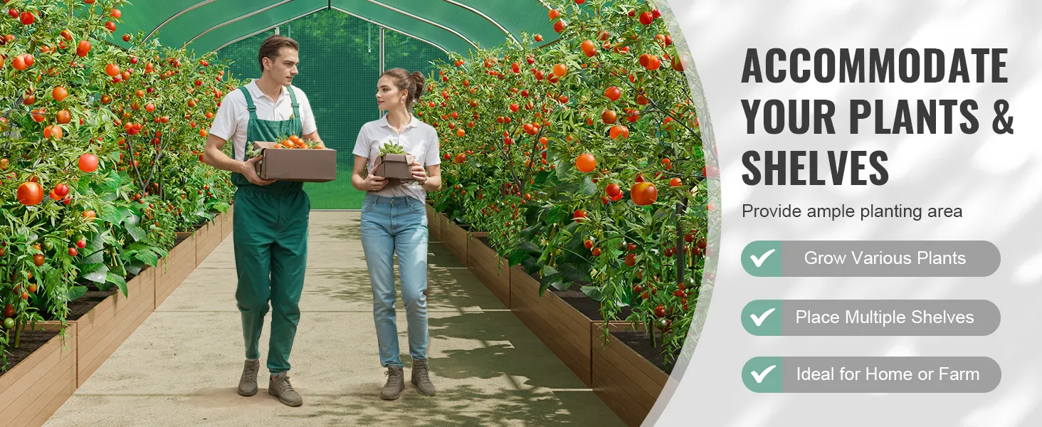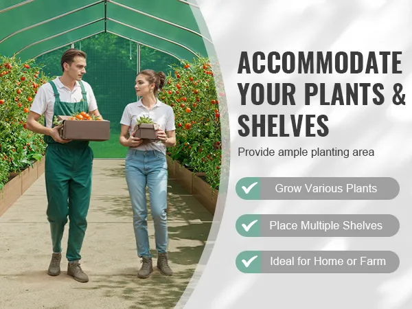 Door het royale formaat van deze foliekas kunt u vrij verschillende planten planten en eenvoudig meerdere planken plaatsen. Of het nu voor de moestuin of een kleine boerderij is, hij voldoet aan al uw beplantingsbehoeften.