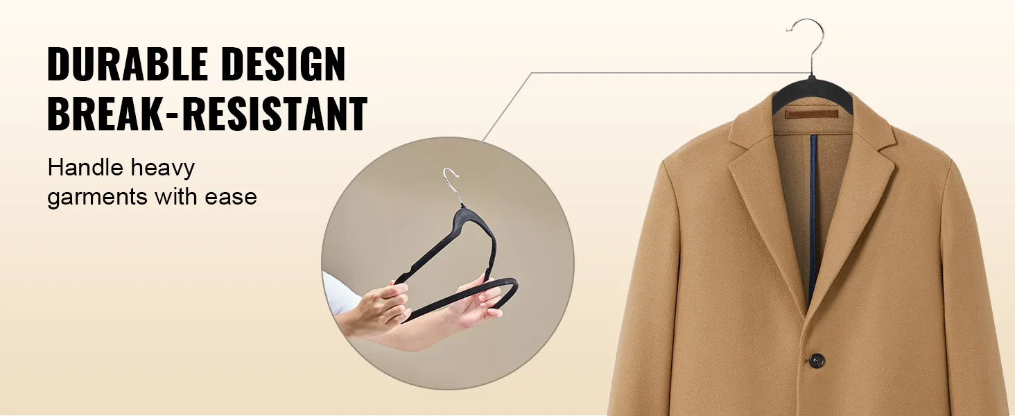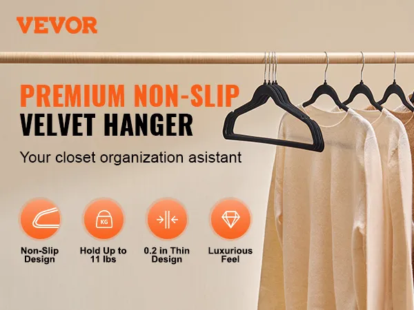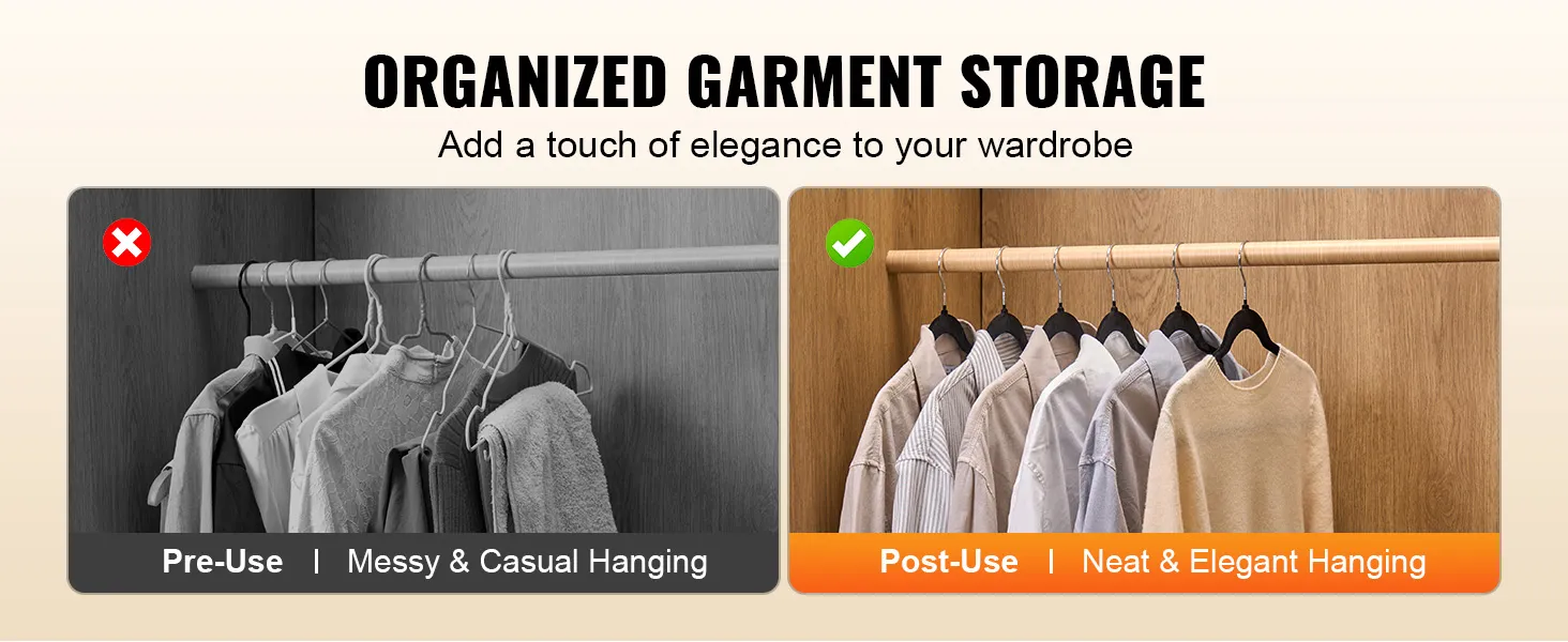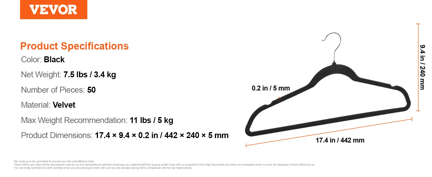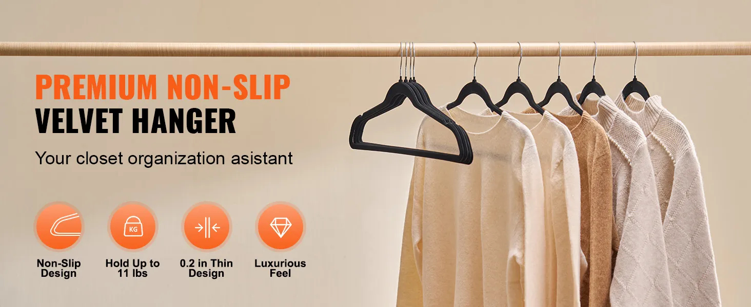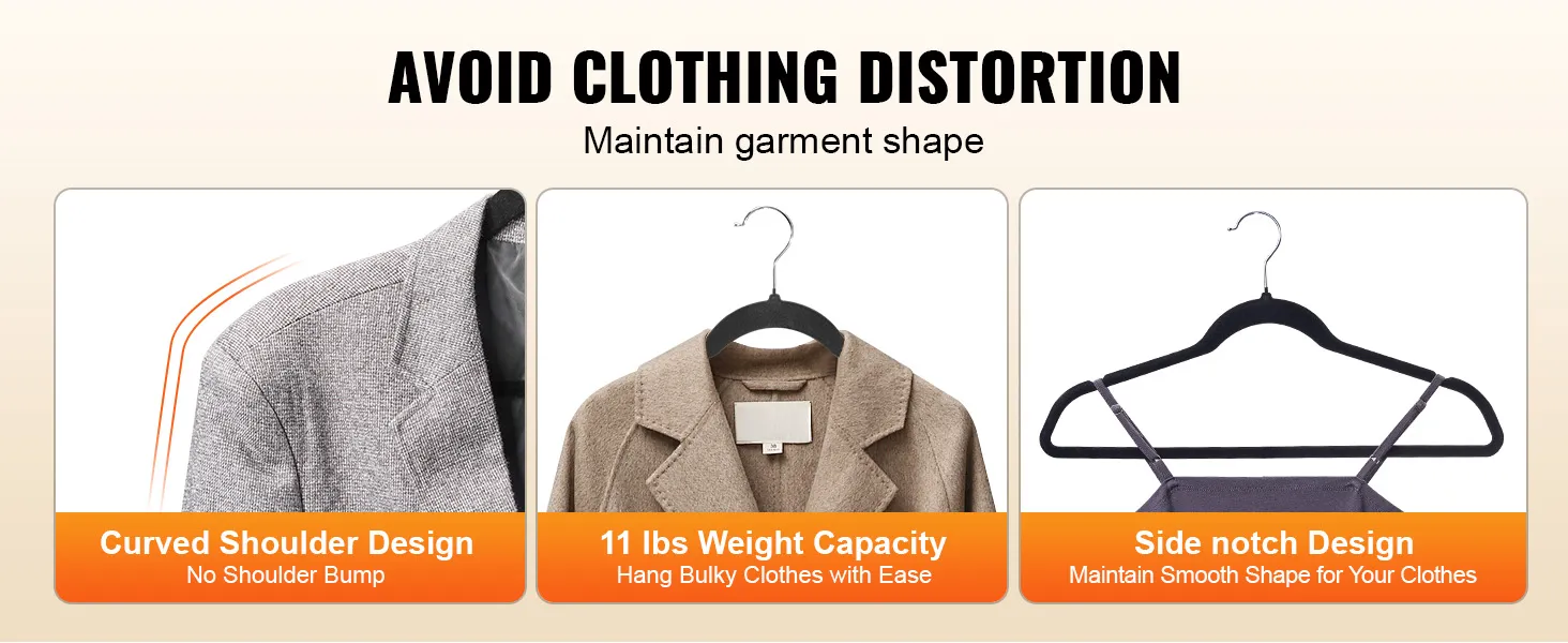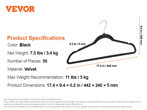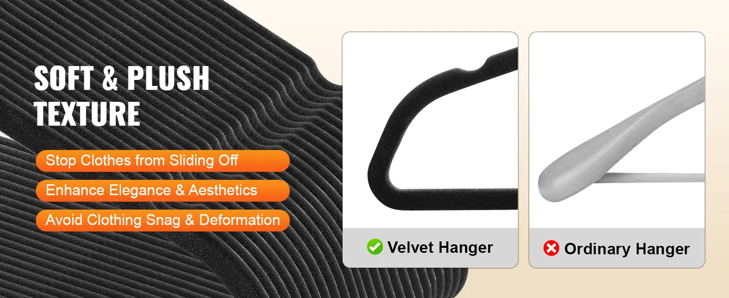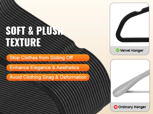 Fine Velvet: This pack includes 50 black velvet hangers. Its surface is made of fine and soft velvet material, which greatly increases the friction of the hangers and avoids clothes from slipping and hooking.