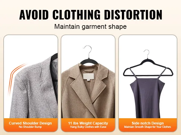 The curved, load-bearing, grooved practical design of this hanger allows you to hang most of your clothes. So you don't have to fold your clothes, reducing creases and wrinkles.