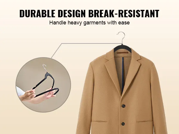This hanger is made of high quality material. Heavy coats, sweaters, down and other winter clothes can be hung without fear. No need to worry that the hanger will break or deform.