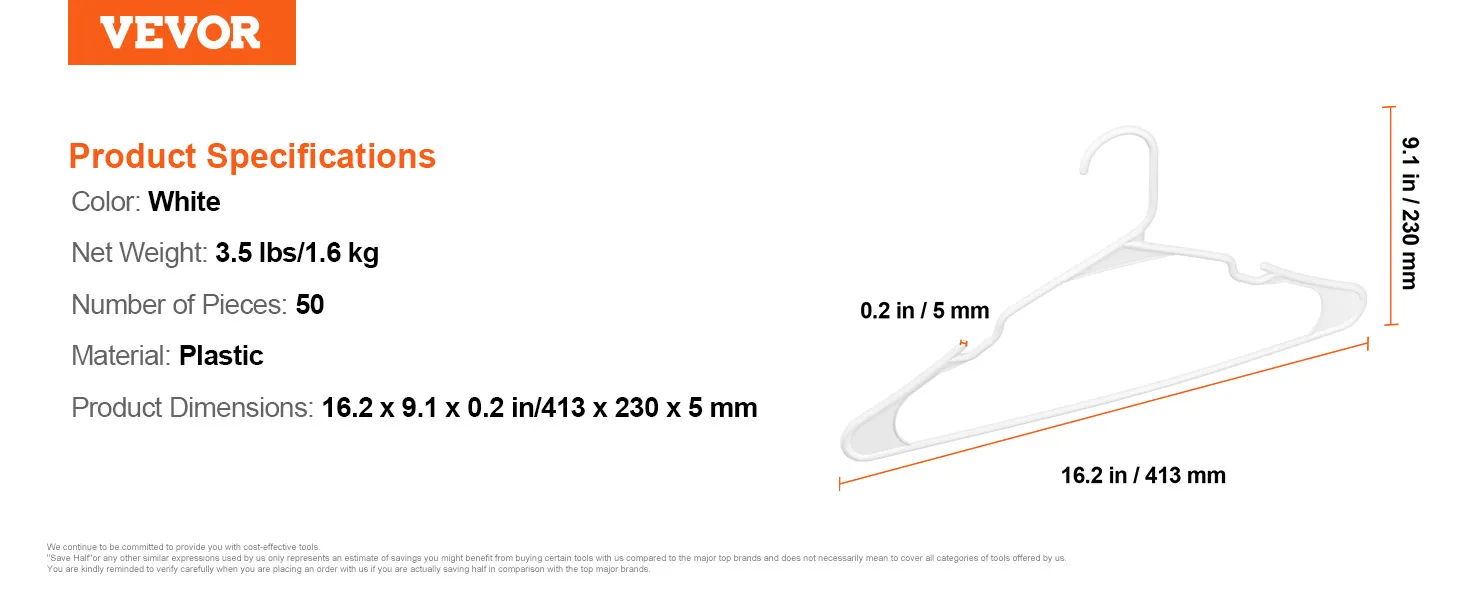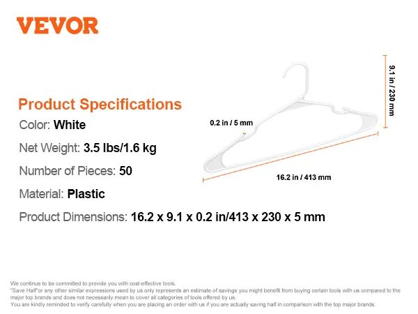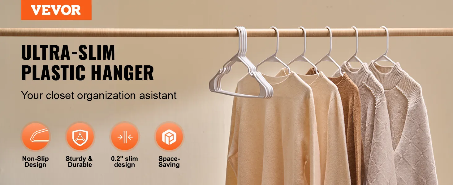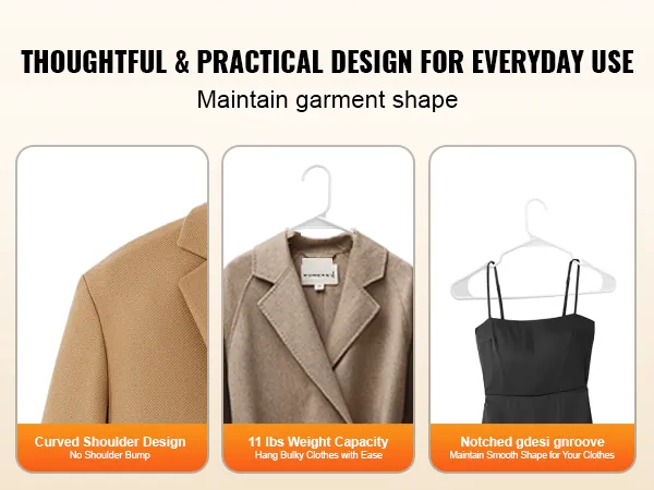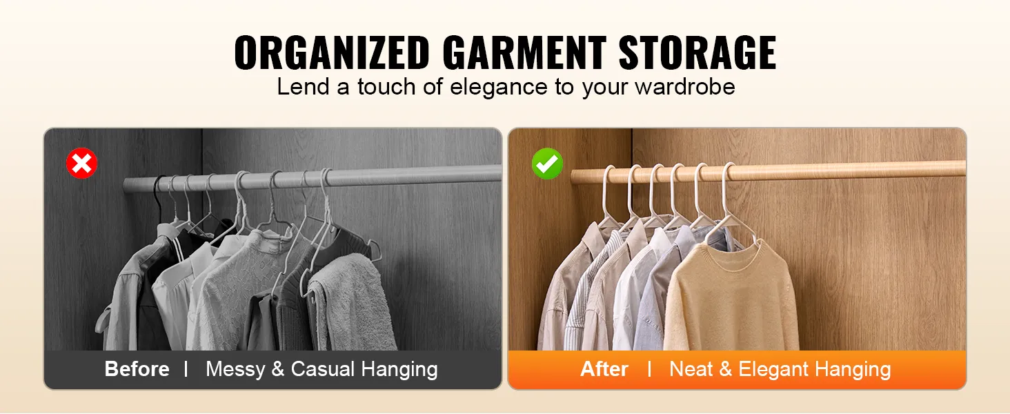 Slank ontwerp: deze hanger is ultradun (0,2 inch / 5,08 mm). In vergelijking met andere gewone kleerhangers kan er meer kleding in dezelfde kastruimte worden geplaatst, waardoor je kast opgeruimd blijft.