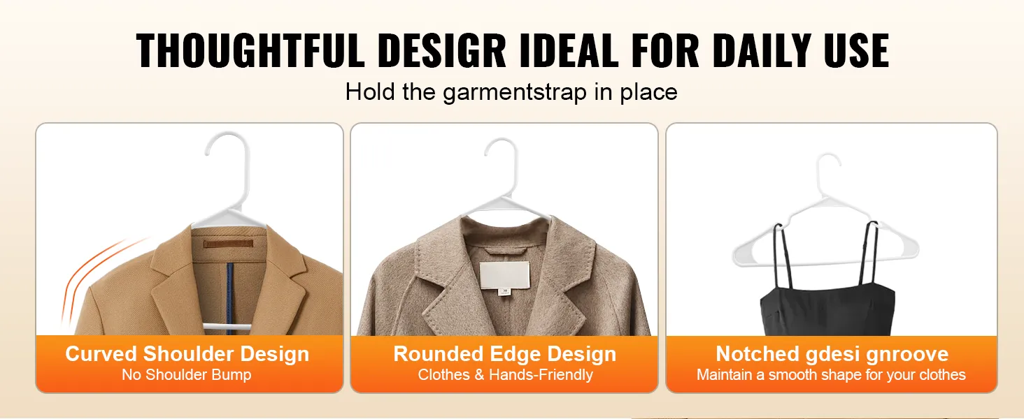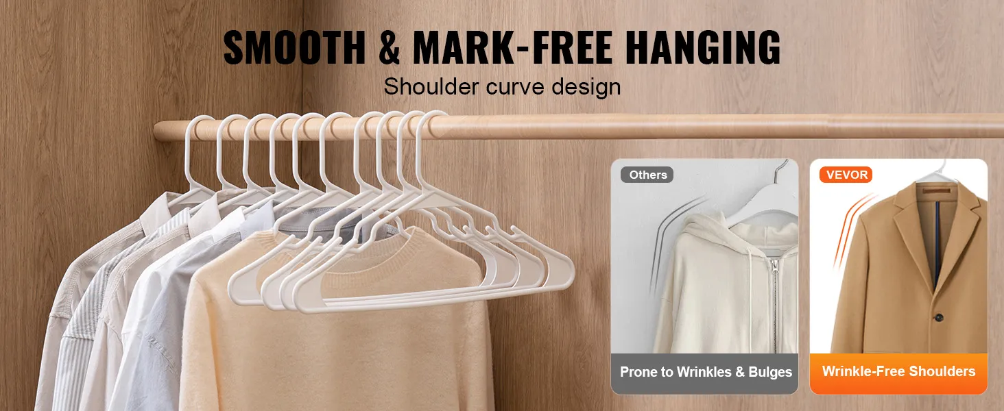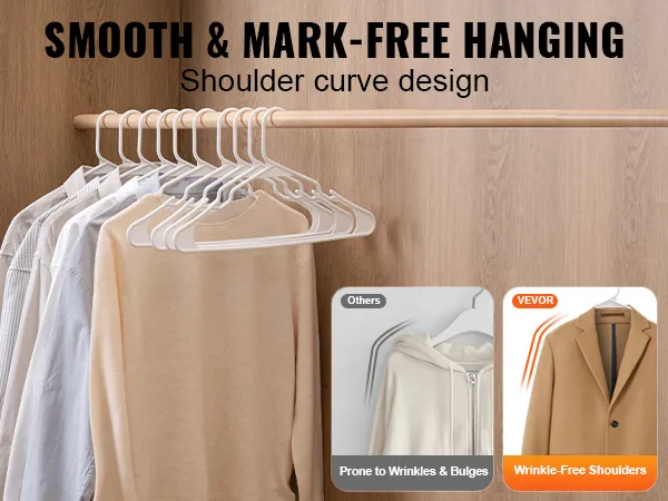 Door het gebogen, stevige, geribbelde en praktische ontwerp van deze hanger kun je de meeste kleding ophangen. De kleding hoeft niet gevouwen te worden, waardoor kreuken en vouwen vermeden worden.