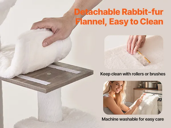 • Easy-to-Clean Cushion: Give your cat the cloud-like comfort it deserves! This large cat tree features soft faux rabbit fur cushions on each level, enhancing grip while providing a cozy spot to rest. With detachable, washable pads, this cat tree is both comfortable for your cat and easy to maintain for you.