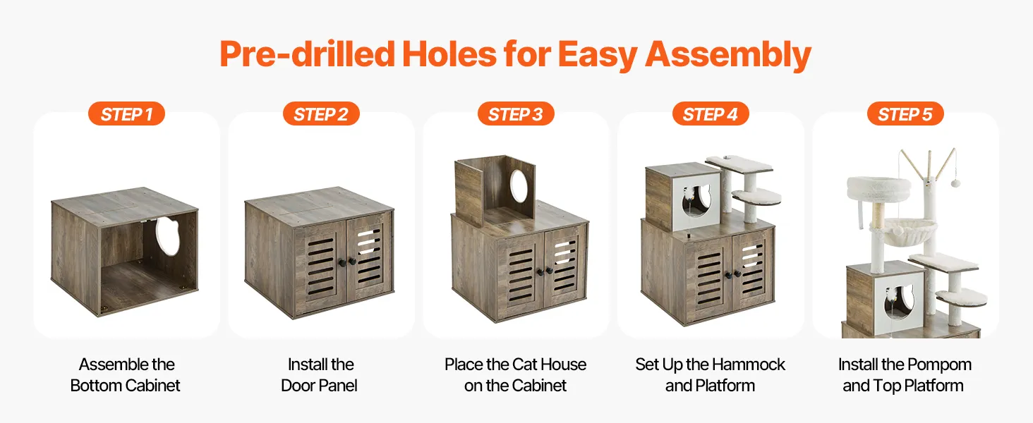 Installation is a breeze with pre-drilled holes and clear instructions! This cat condo is designed for quick and easy setup, so even first-time pet owners can have it ready in no time. Create a cozy and fun space for your cats without the stress of complicated assembly.