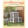 Dit verhoogde kattenhuis heeft aparte plekken om te eten, rusten en spelen. Elk gedeelte biedt privacy, waardoor het ideaal is voor huishoudens met meerdere katten om stress te verminderen en privacy te creëren.
