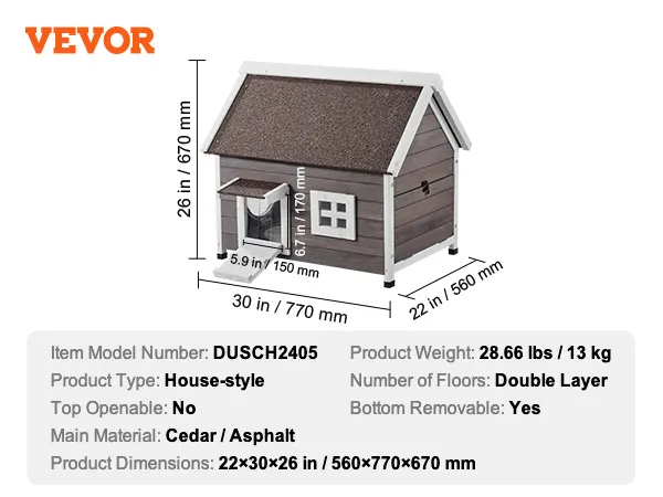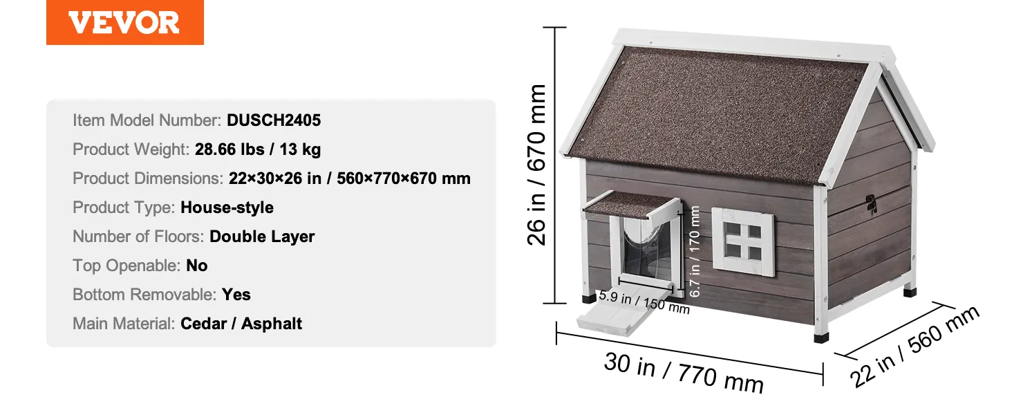 Clear View: Equipped with dual acrylic windows for your cat to enjoy the surroundings. Comes with removable PVC door flaps for winter protection and easy removal in summer, making the feral cat shelter both cozy and functional.