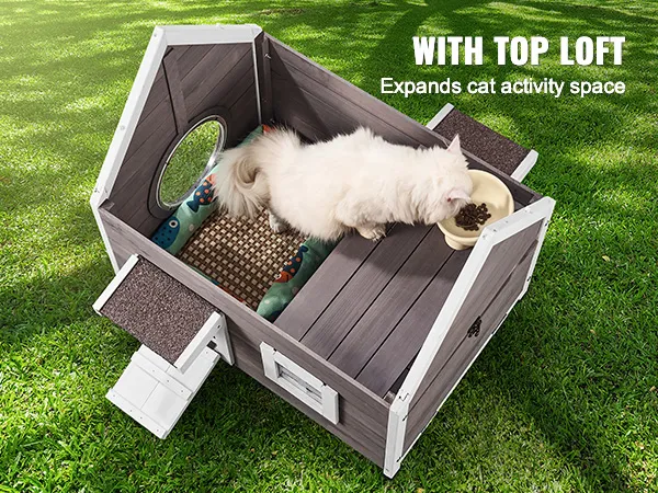 The top loft design creates distinct eating and sleeping areas, expanding your cat's activity space and providing a comfortable living environment.