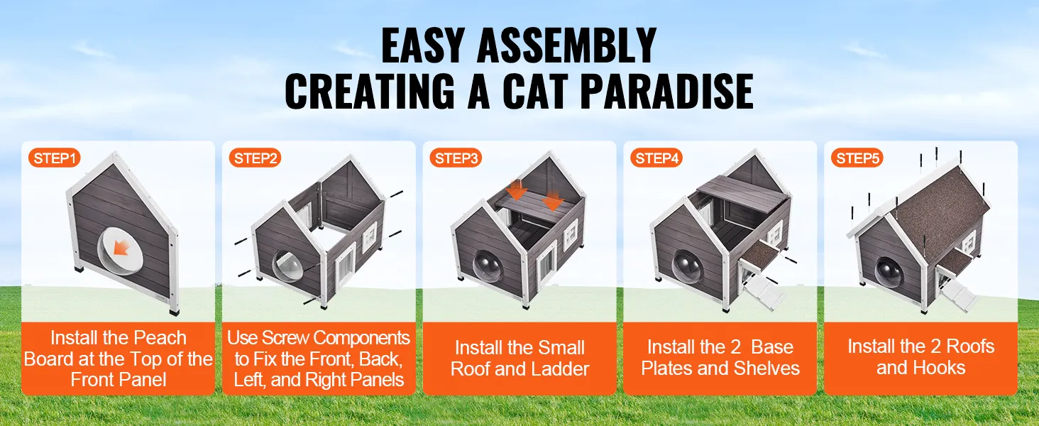 Our feral cat house features pre-drilled holes for straightforward assembly with woodworking screws, eliminating the need for specialized tools and saving you time and effort.
