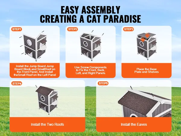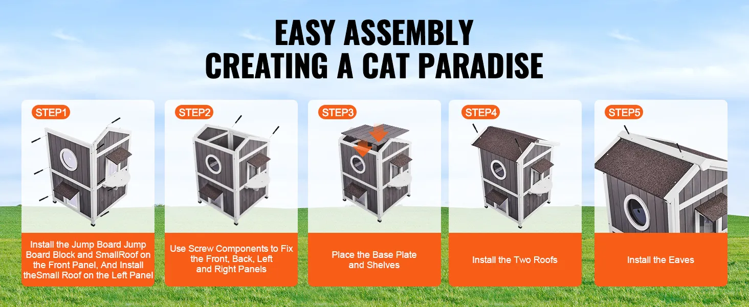 Gemakkelijk schoon te maken: In tegenstelling tot vaste, niet-verwijderbare kattenhokken, is ons kattenhuis voor buiten voorzien van grote dubbelzijdige deuren en een verwijderbare bodemplaat voor eenvoudige reiniging. Open eenvoudig de zijdeuren om toegang te krijgen tot een schone omgeving voor uw kat.