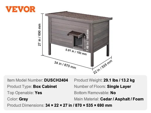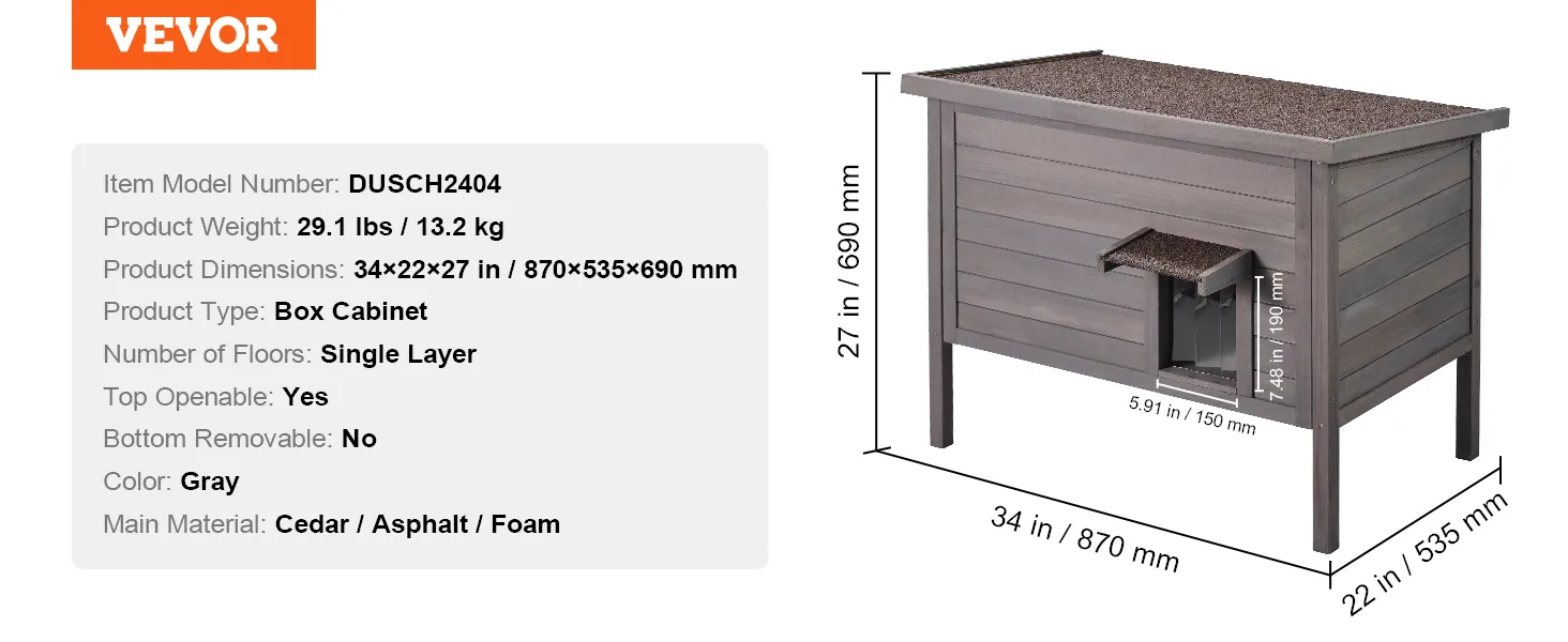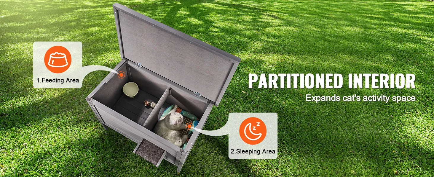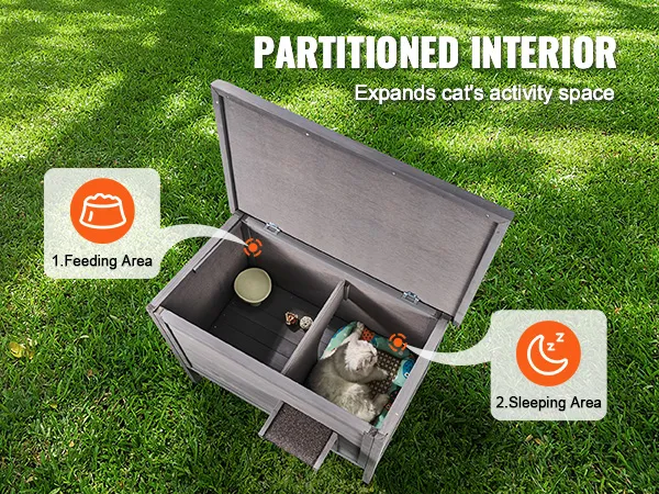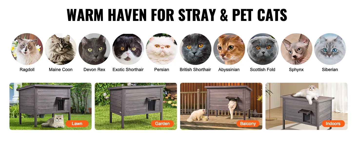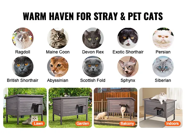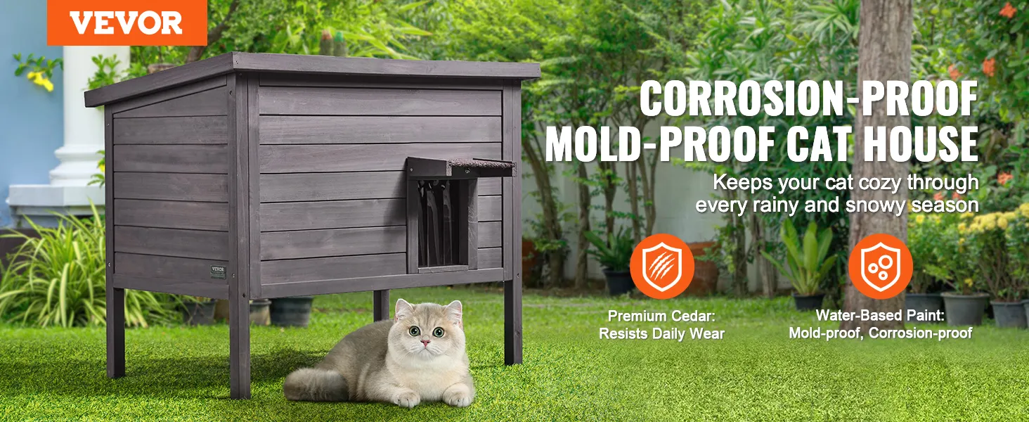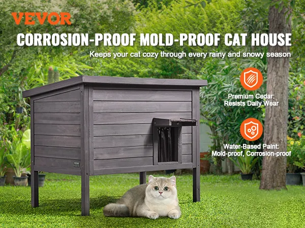 Comfortabel kattenhuis: dit kattenhuis voor buiten is gemaakt van hoogwaardig cederhout, duurzaam en bestand tegen scheuren of vervorming. Het is effectief bestand tegen slechte weersomstandigheden en biedt uw katachtige vriend een warm en gezellig huis.