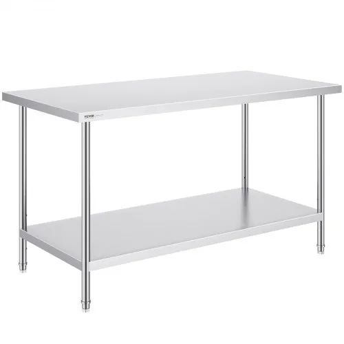 VEVOR Stainless Steel Food Prep Table, 18 x 48 x 34 Inch Commercial Kitchen Worktable, with 2 Adjustable Undershelf, Heavy Duty Prep Table Metal Work Table for BBQ, Kitchen, Home, and Garage