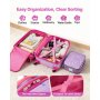 Deze 5-delige kinderkofferset voldoet aan de handbagagevoorschriften en maakt reizen zorgeloos. De stevige schaal, praktische vakken, verstelbare handgreep en soepel rollende wielen helpen kinderen slim in te pakken en veilig te reizen.