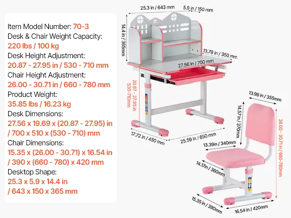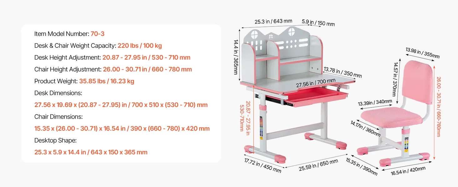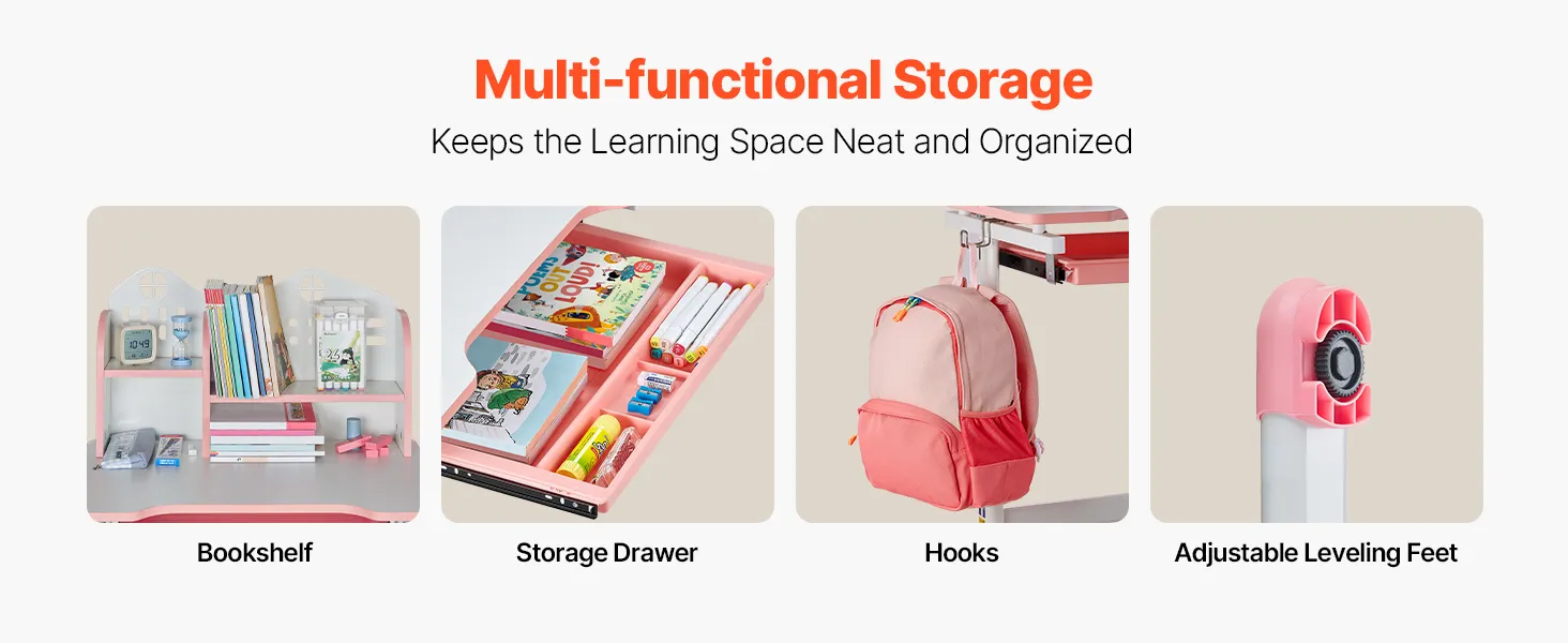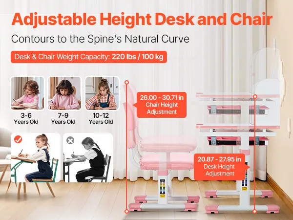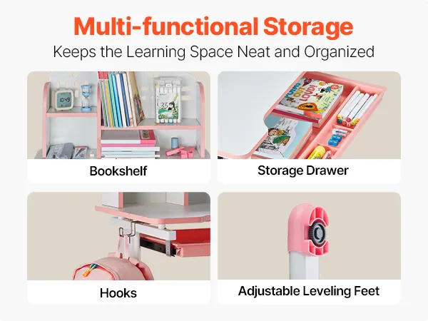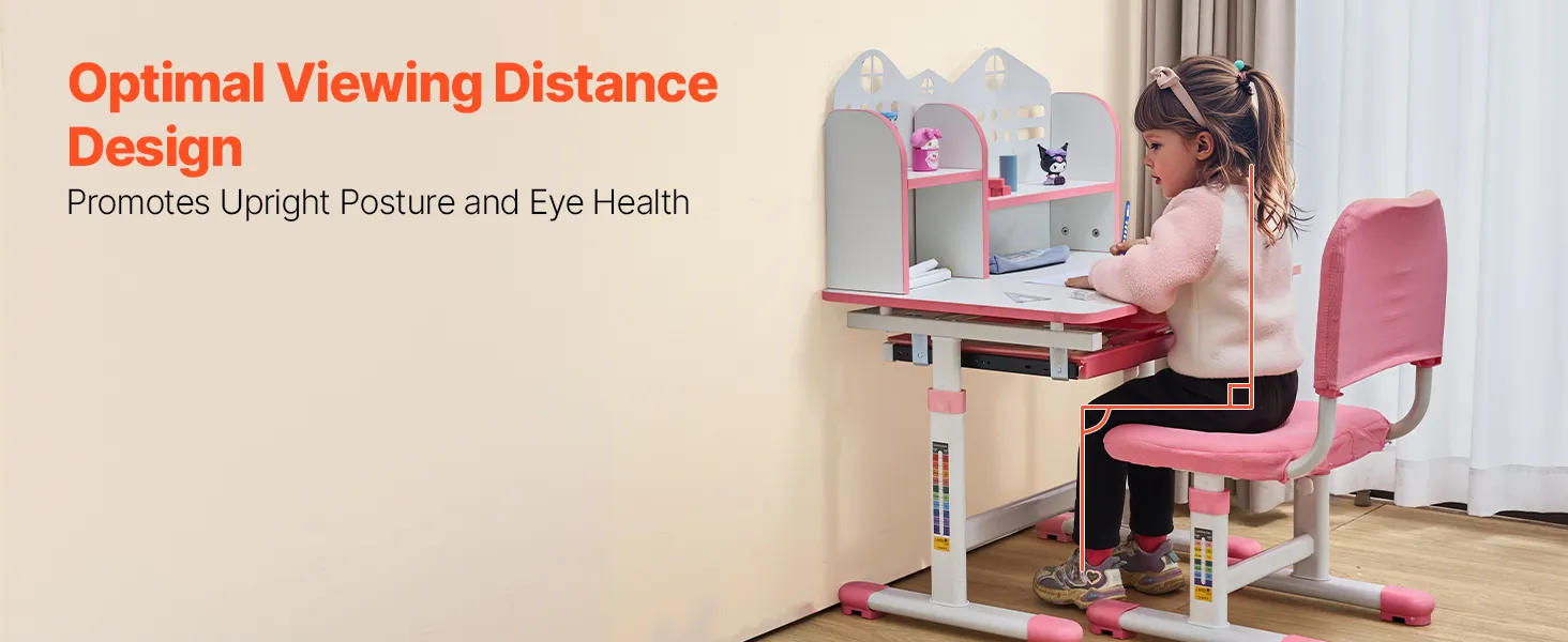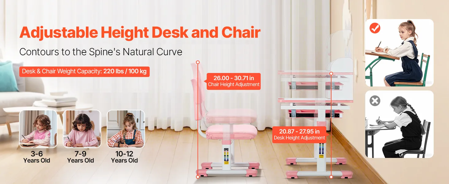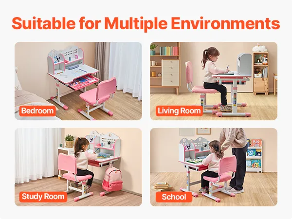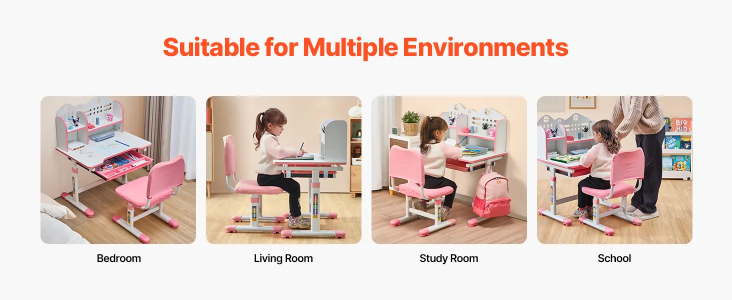 Flexible Height Adjustment: Easily adjust the heights of the desk and chair to accommodate your child's growth. Parents can effortlessly modify both to ensure your child always maintains a comfortable and supportive learning posture.