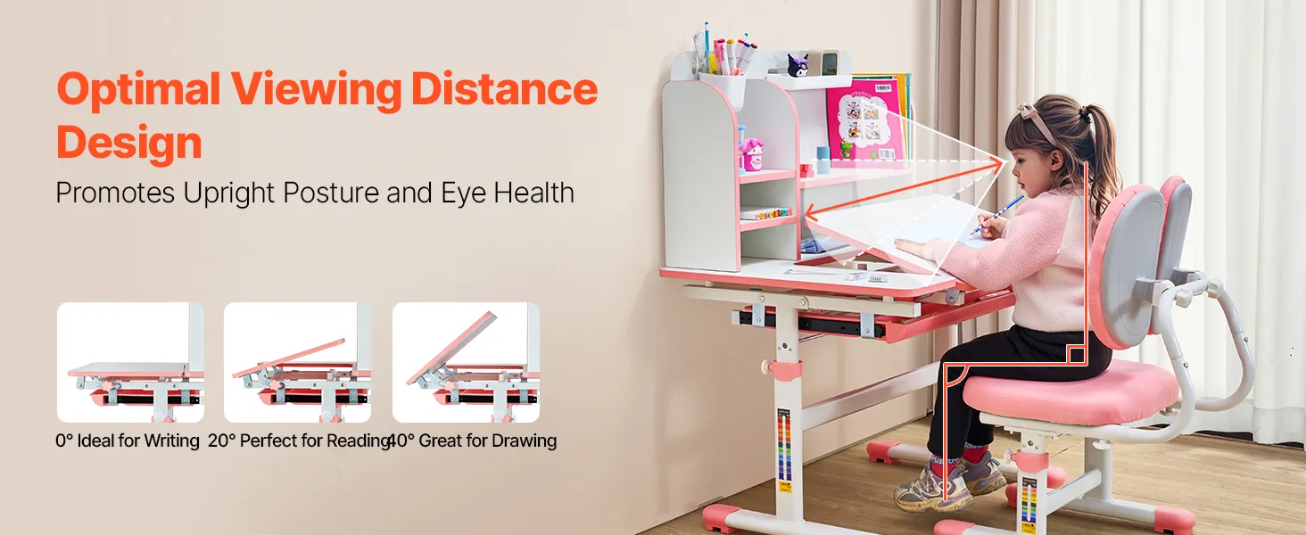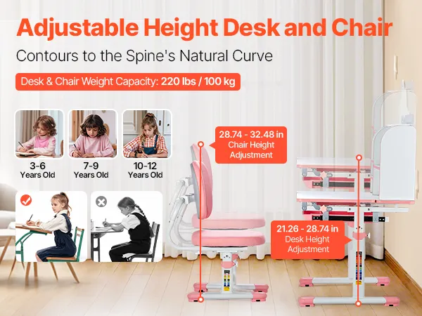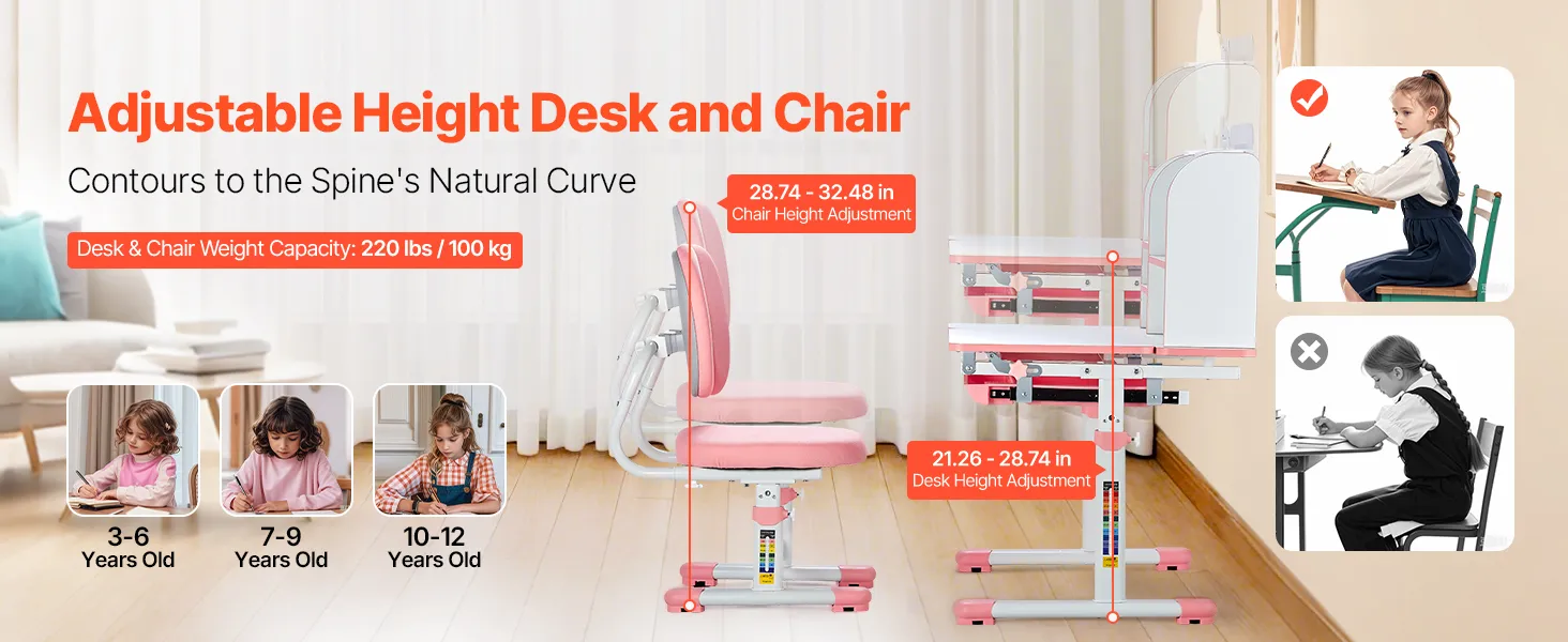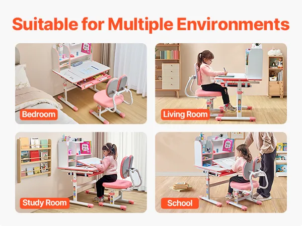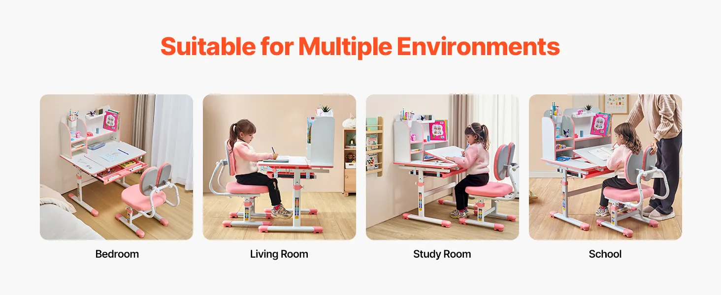Flexible Height Adjustment: Easily adjust the heights of the desk and chair to accommodate your child's growth. Parents can effortlessly modify both to ensure your child always maintains a comfortable and supportive learning posture.