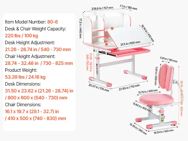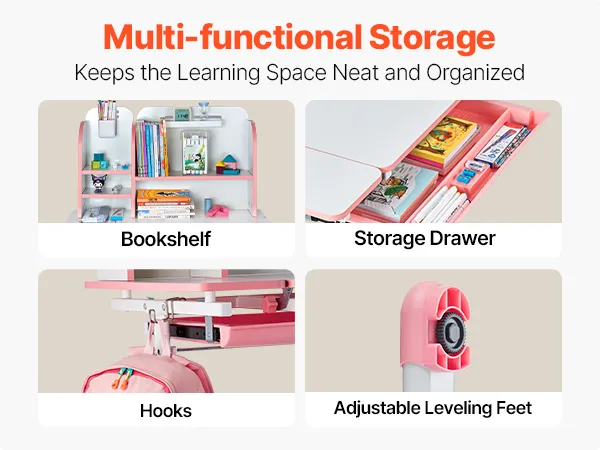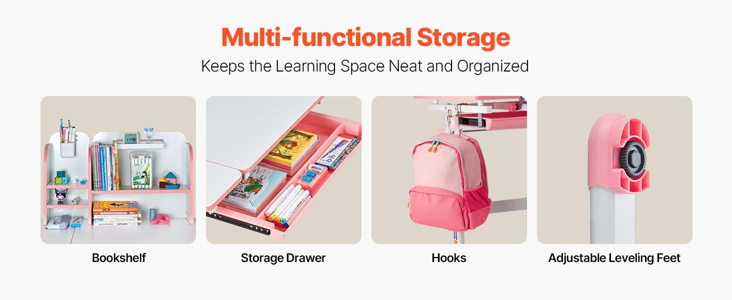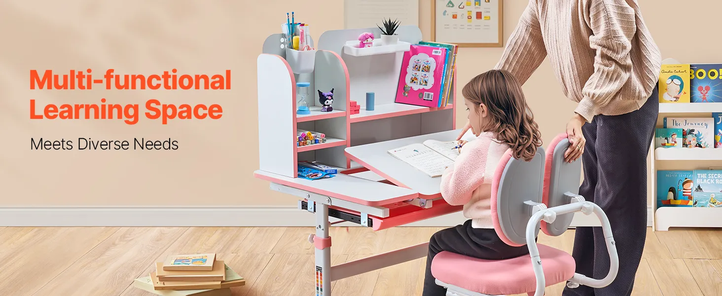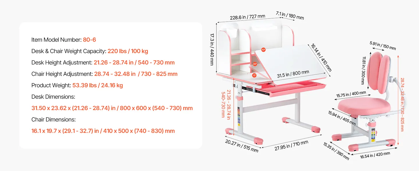 Flexible Height Adjustment: Easily adjust the heights of the desk and chair to accommodate your child's growth. Parents can effortlessly modify both to ensure your child always maintains a comfortable and supportive learning posture.