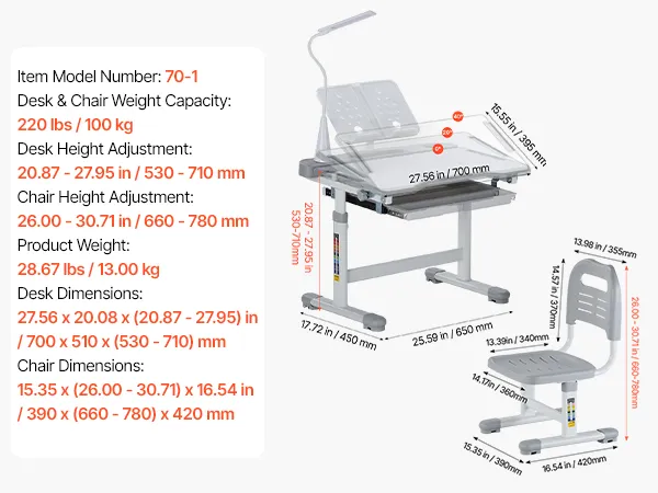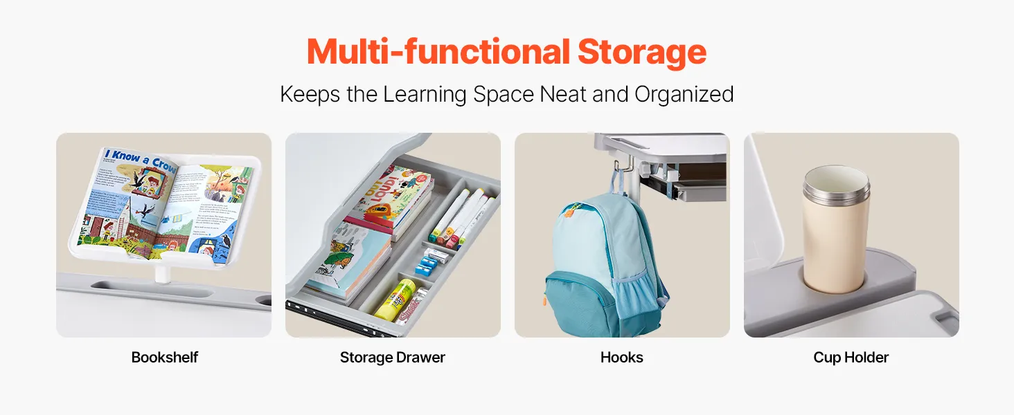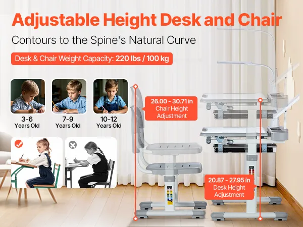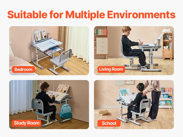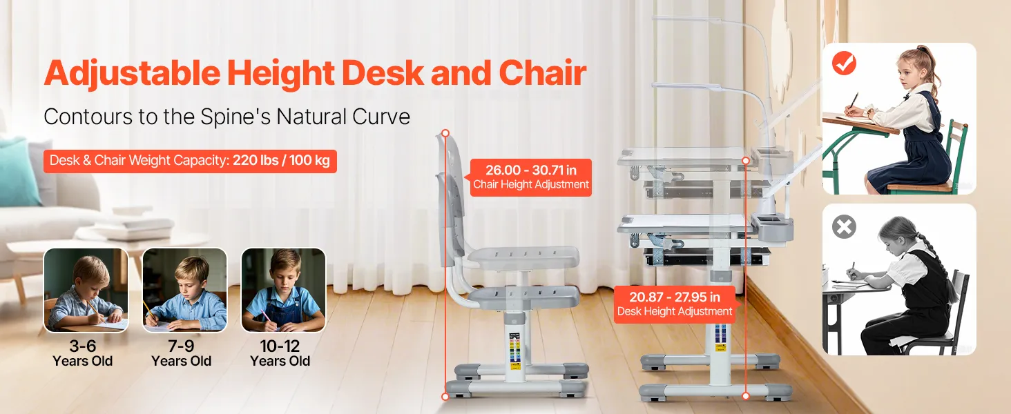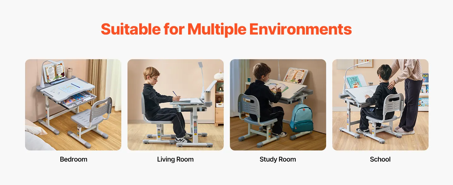 Flexible Height Adjustment: Easily adjust the heights of the desk and chair to accommodate your child's growth. Parents can effortlessly modify both to ensure your child always maintains a comfortable and supportive learning posture.