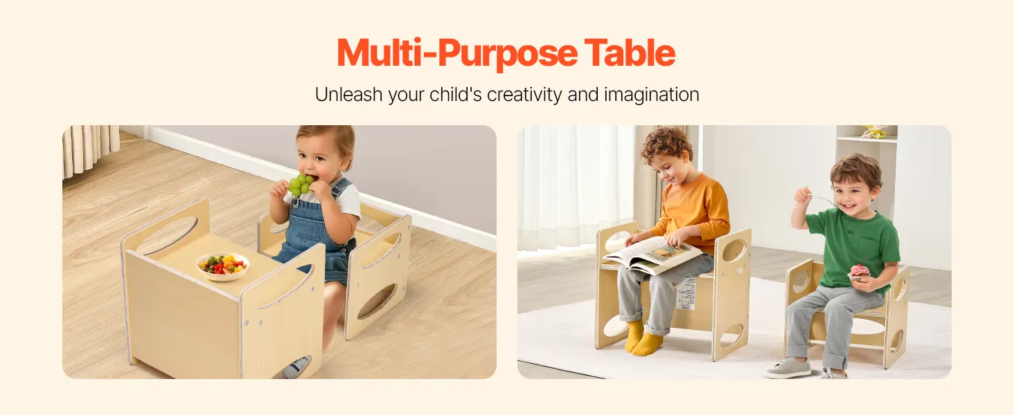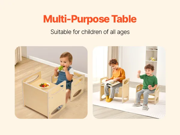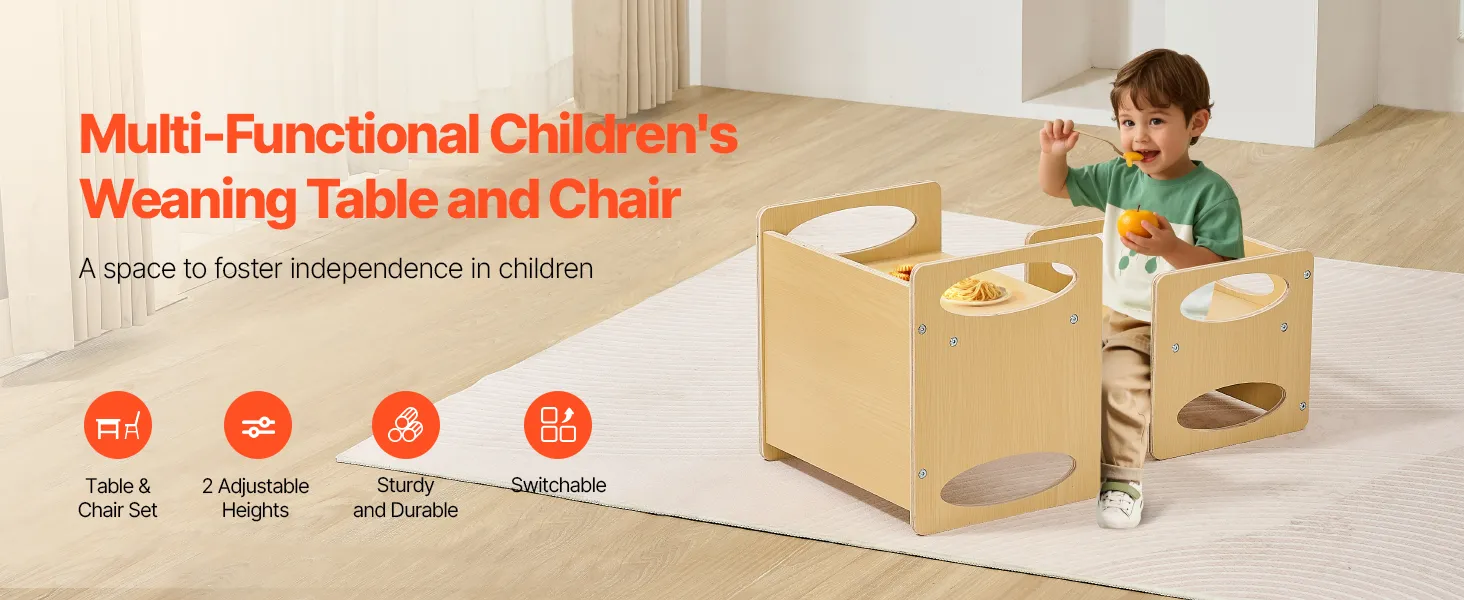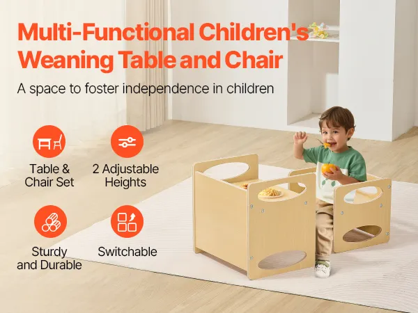 Easy Table-to-Chair Conversion: Our children's Montessori weaning table and chair set can quickly transform from a stable chair to a spacious tabletop, accommodating your child's diverse needs as they grow.