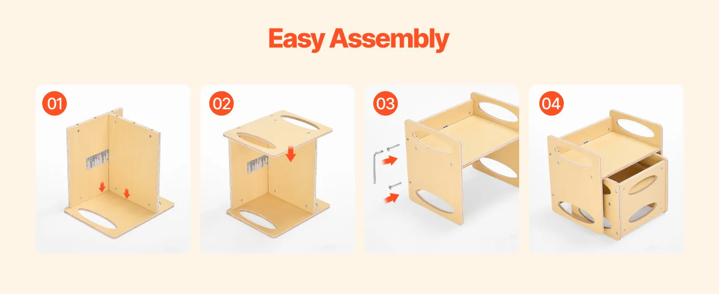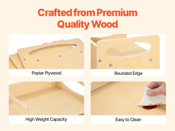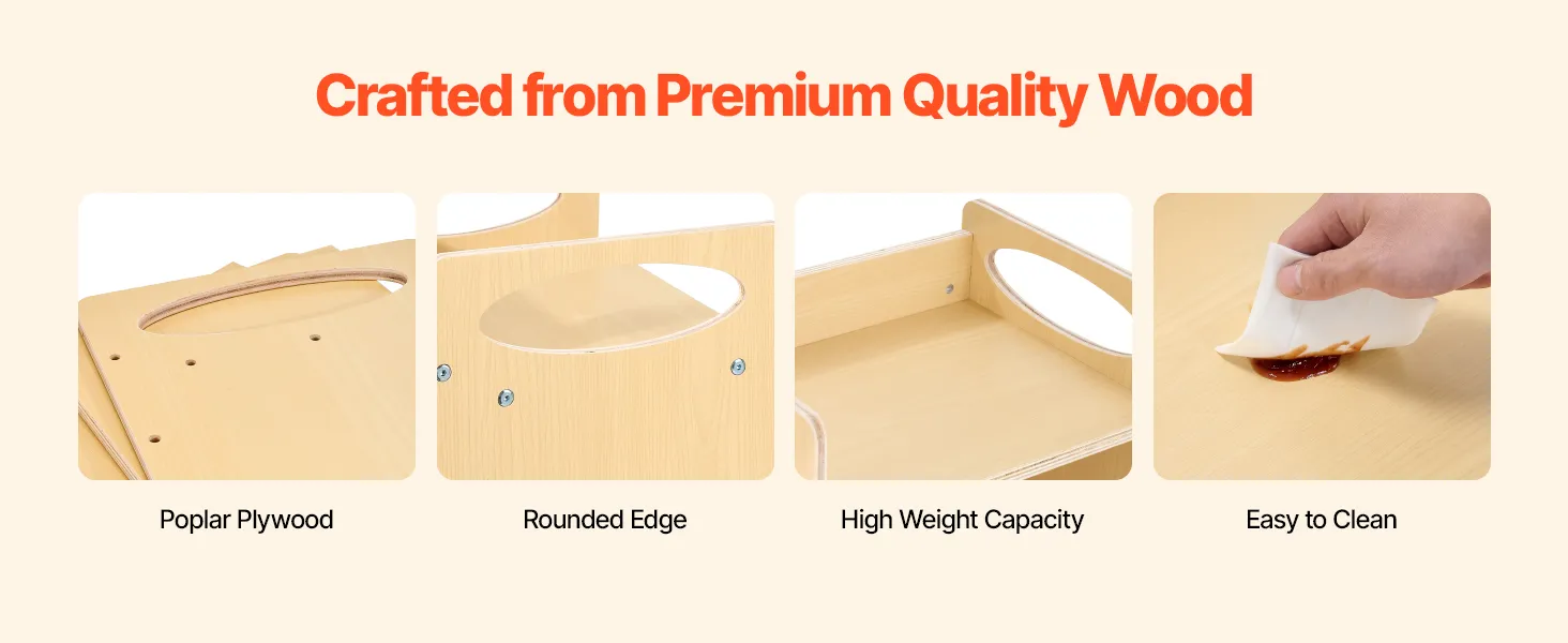 Made from durable plywood, this Montessori furniture features rounded corners to reduce injury risks. Its strong weight capacity and easy-to-clean surface ensure convenience, security, and stability for your child.