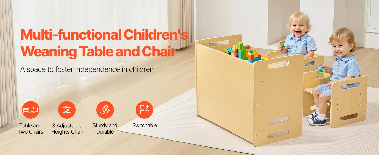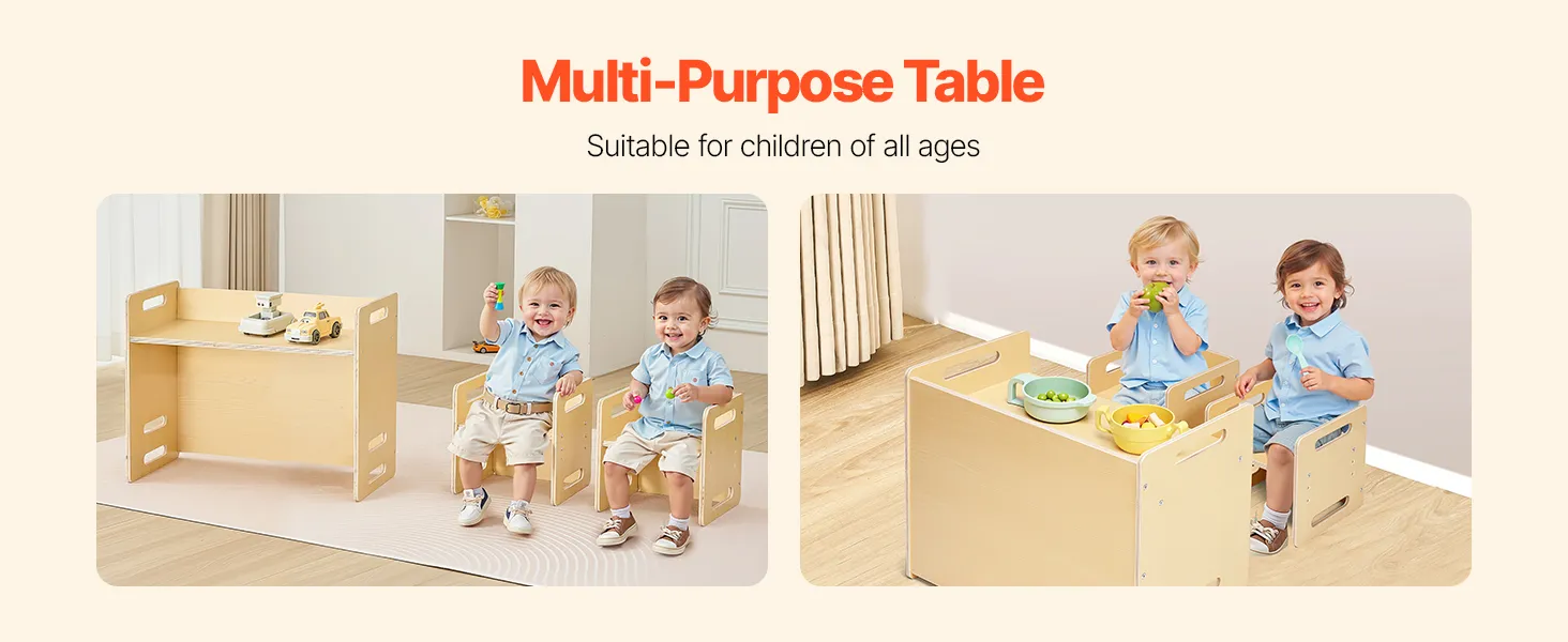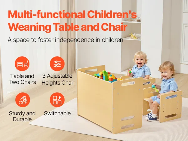 Easy Table-to-Chair Conversion: Our children's Montessori weaning table and chair set can quickly transform from a stable chair to a spacious tabletop, accommodating your child's diverse needs as they grow.