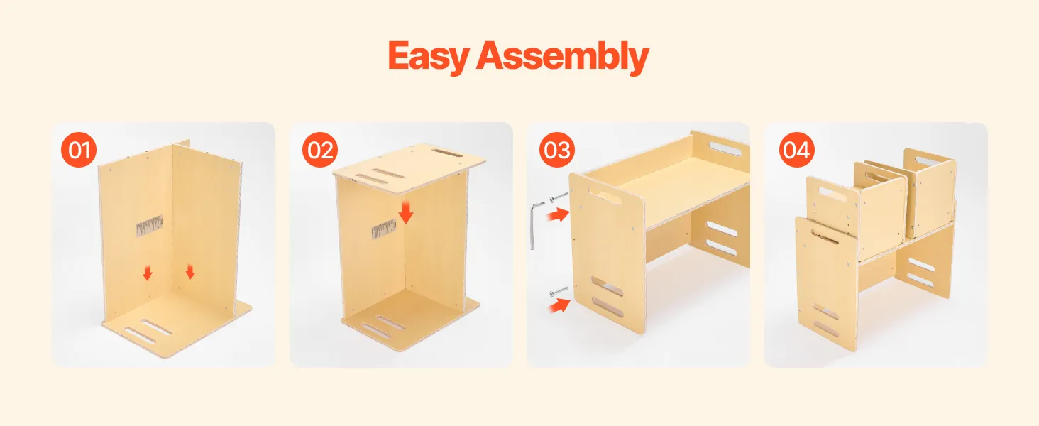 Our Montessori weaning table and chair set simplify the assembly process by removing complicated steps. Just follow the straightforward instructions, and you'll have it set up quickly, without hassle.