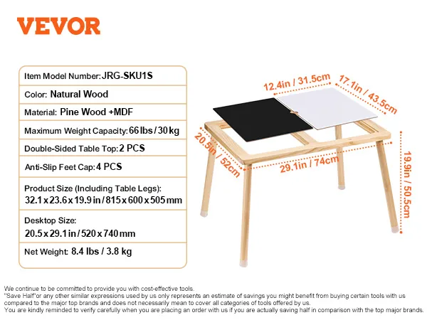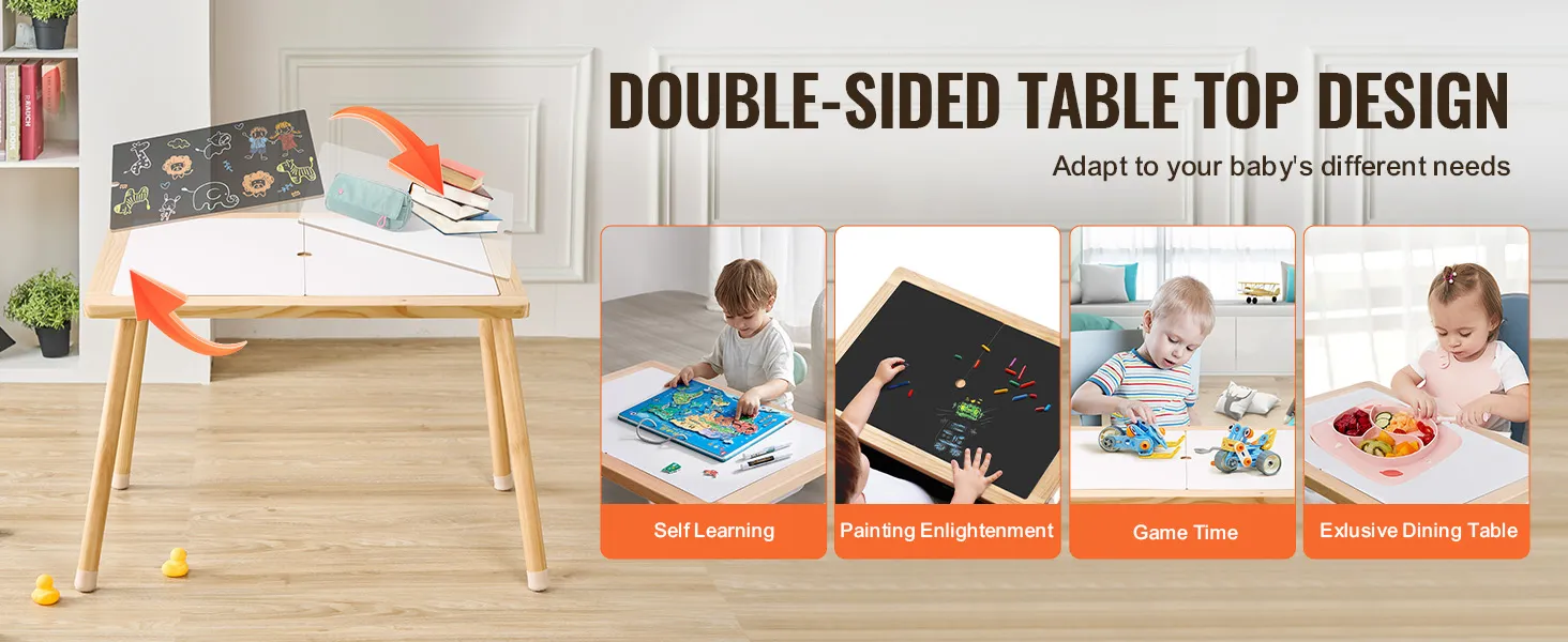 Dubbelzijdig beschrijfbaar tafelblad: Met 2 dubbelzijdige tafelbladen - een whiteboard en een schoolbordtafelblad - biedt onze sensorische activiteitentafel veelzijdige functionaliteit. Uw kinderen kunnen allerlei activiteiten ondernemen, van lekker eten en tekenen tot lezen, huiswerk maken en spelletjes spelen.