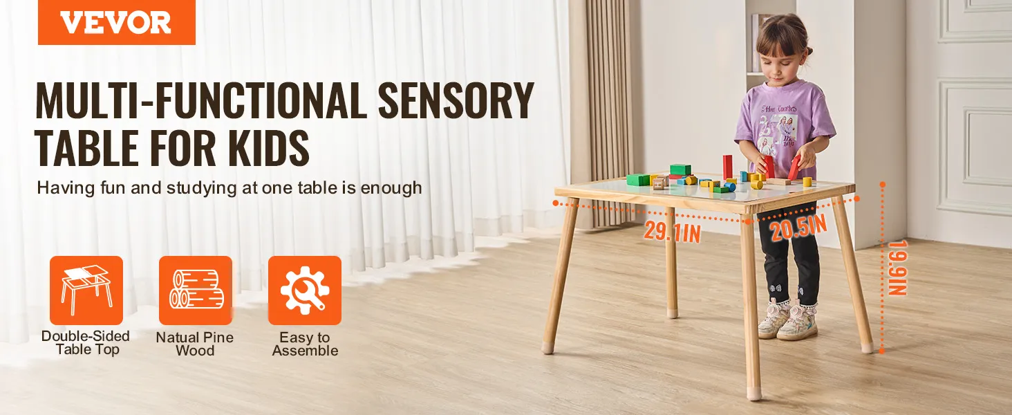 Multifunctionele sensorische tafel: met de VEVOR sensorische tafel voor peuters kunt u een minispeeltuin voor uw kinderen creëren en hen aanmoedigen om te ontdekken, spelen en leren door directe zintuiglijke ervaringen. Het is een uitstekende partner voor het bevorderen van de zintuiglijke ontwikkeling, de fijne motoriek en de cognitieve vaardigheden.