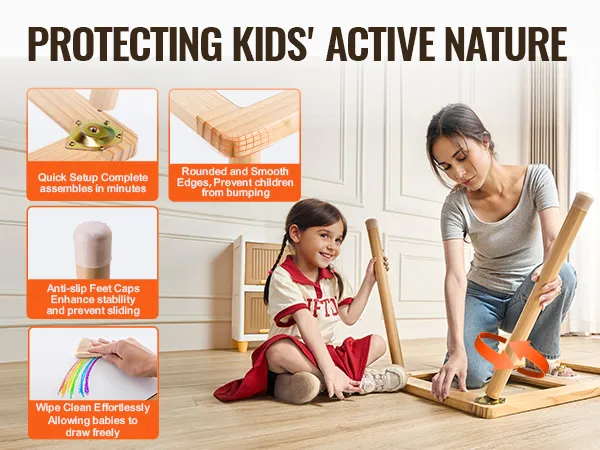 Eenvoudig te monteren en te onderhouden: er is geen gereedschap nodig om deze sensorische speeltafel in elkaar te zetten - het enige wat u hoeft te doen is de poten met elkaar te verbinden. Uitgerust met 4 antislipvoetdoppen, beschermt hij uw vloeren tegen krassen en vermindert het risico op accidentele schokken. Het gladde oppervlak kan eenvoudig worden afgeveegd met een vochtige doek, zodat uw kinderen vrij kunnen tekenen en creëren.